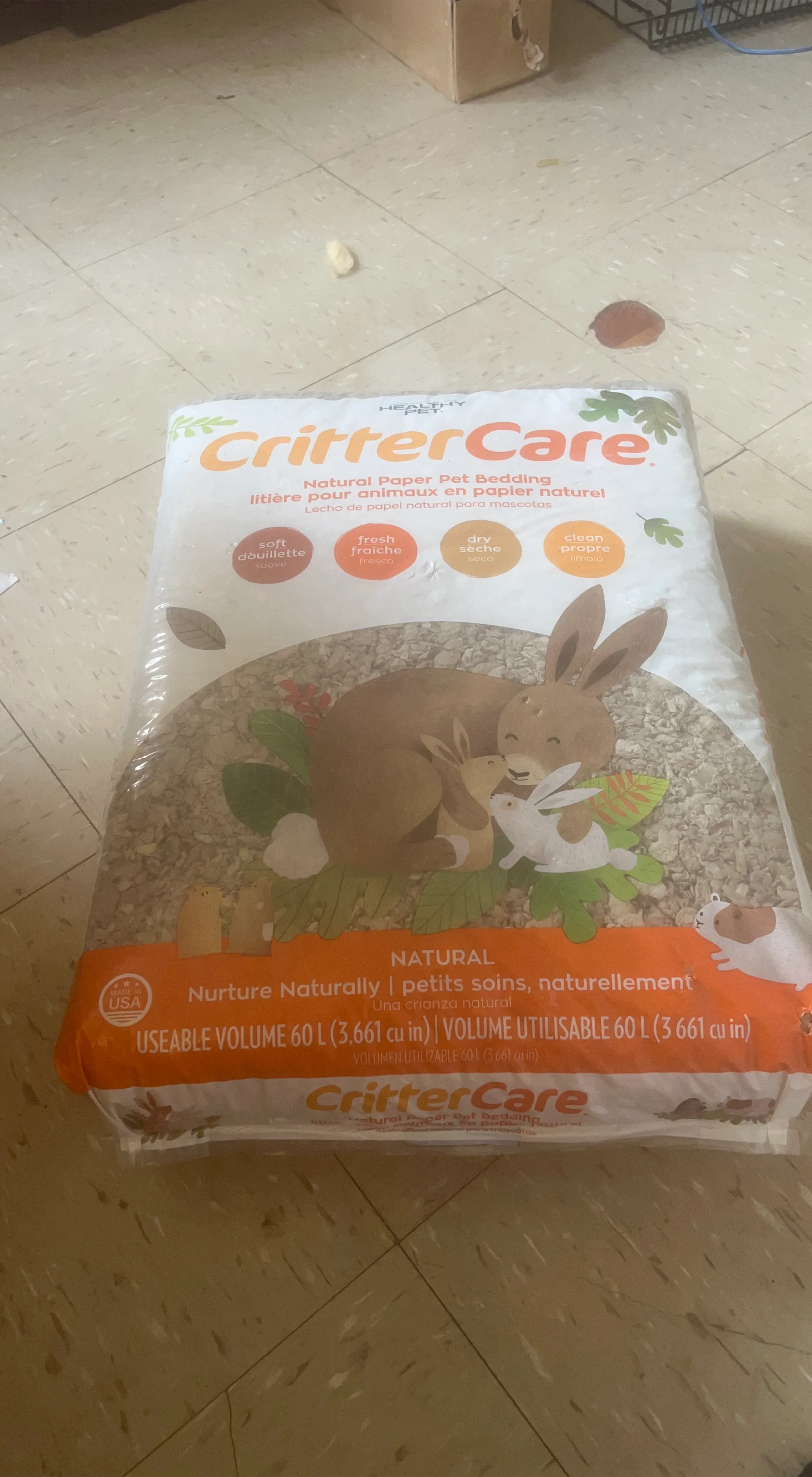 Selling a bag of Critter Care natural paper pet bedding. The bag has a useable volume of 60L (3,661 cu in). It's soft, fresh, dry, and clean!