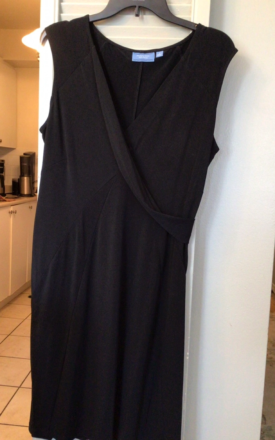 Black Vera Wang knee length dress. Gently worn (maybe 3-4 times). Marked size L, but was fitting me when I was size 12-14. Bought it in Chicago. Was getting a lot of compliments. Open to negotiations.