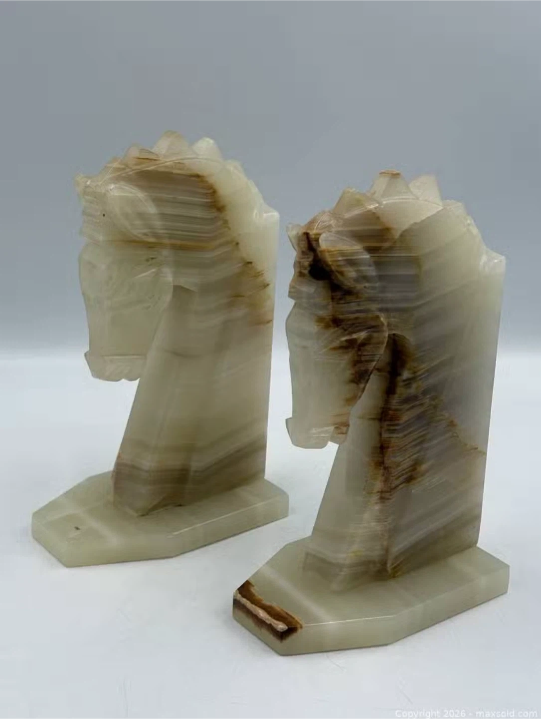 Buy & SellVintage Onyx Horse Head BookendsVintage Onyx Horse Head Bookends$100Set of Vintage Hand Carved Onyx Marble Horse Head Bookends. Each measures: 8" high.WHERE TO MEETRichmond HillView MapSELLERMahshidWestbrook / Mill Pond20920 reviews0 chats·1 favorites·10 viewsSEND CHAT TO SELLERHi Mahshid! I’m interested in your listing.Hi Mahshid! I’m interested in your listing.Get the Karrot app to chatSign In to chat