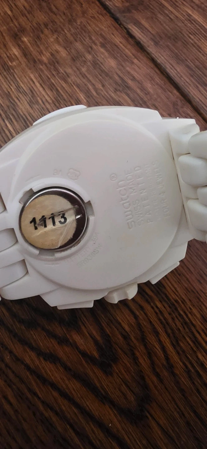 Selling a Swatch watch with a white rubber strap and chronograph features. It's in great shape and ready for a new wrist! The watch has a sporty look and is perfect for everyday wear or casual outings. Needs battery change.