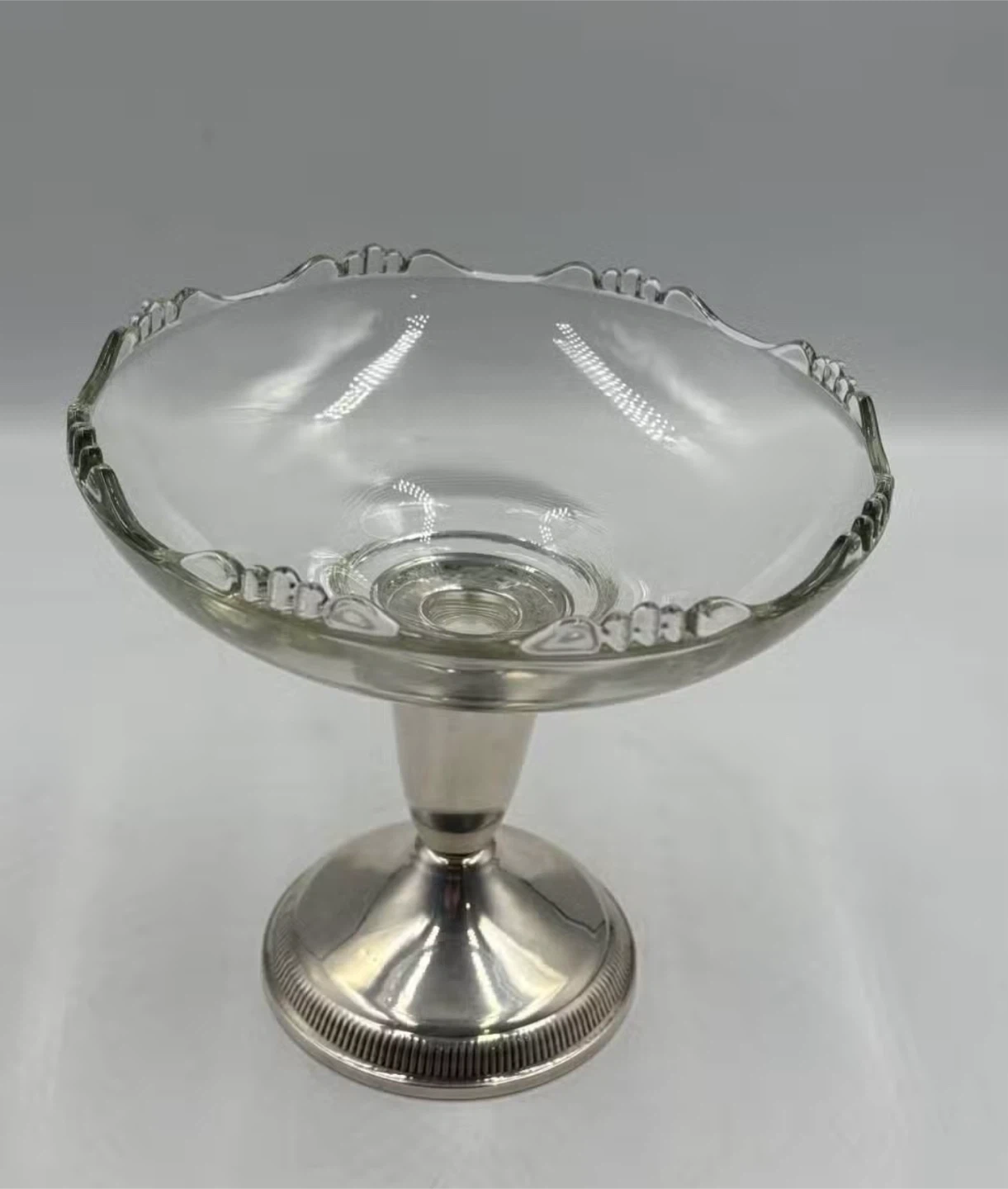 1 - Pedestal dish with sterling silver base, hallmarked as shown in photos.