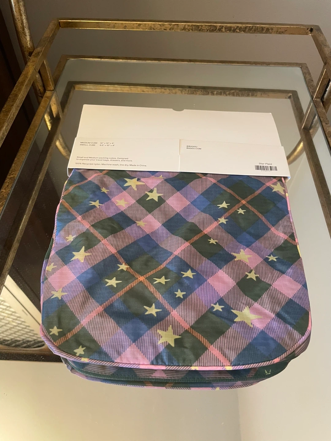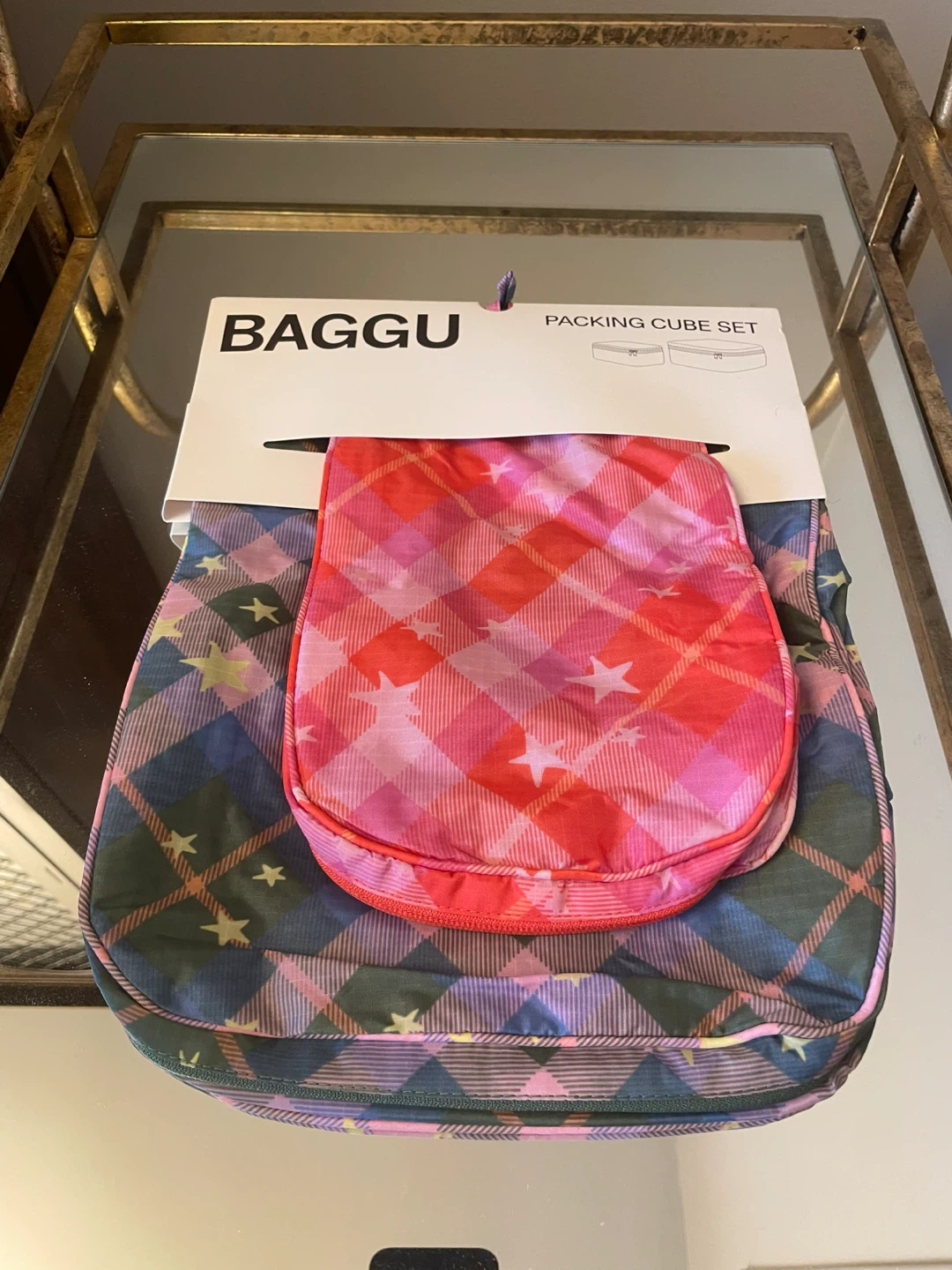 Keep your travel essentials organized with this BAGGU packing cube set in a fun star plaid pattern! The set includes two cubes to help separate and compress your clothes and accessories. Perfect for keeping your suitcase tidy on your next adventure