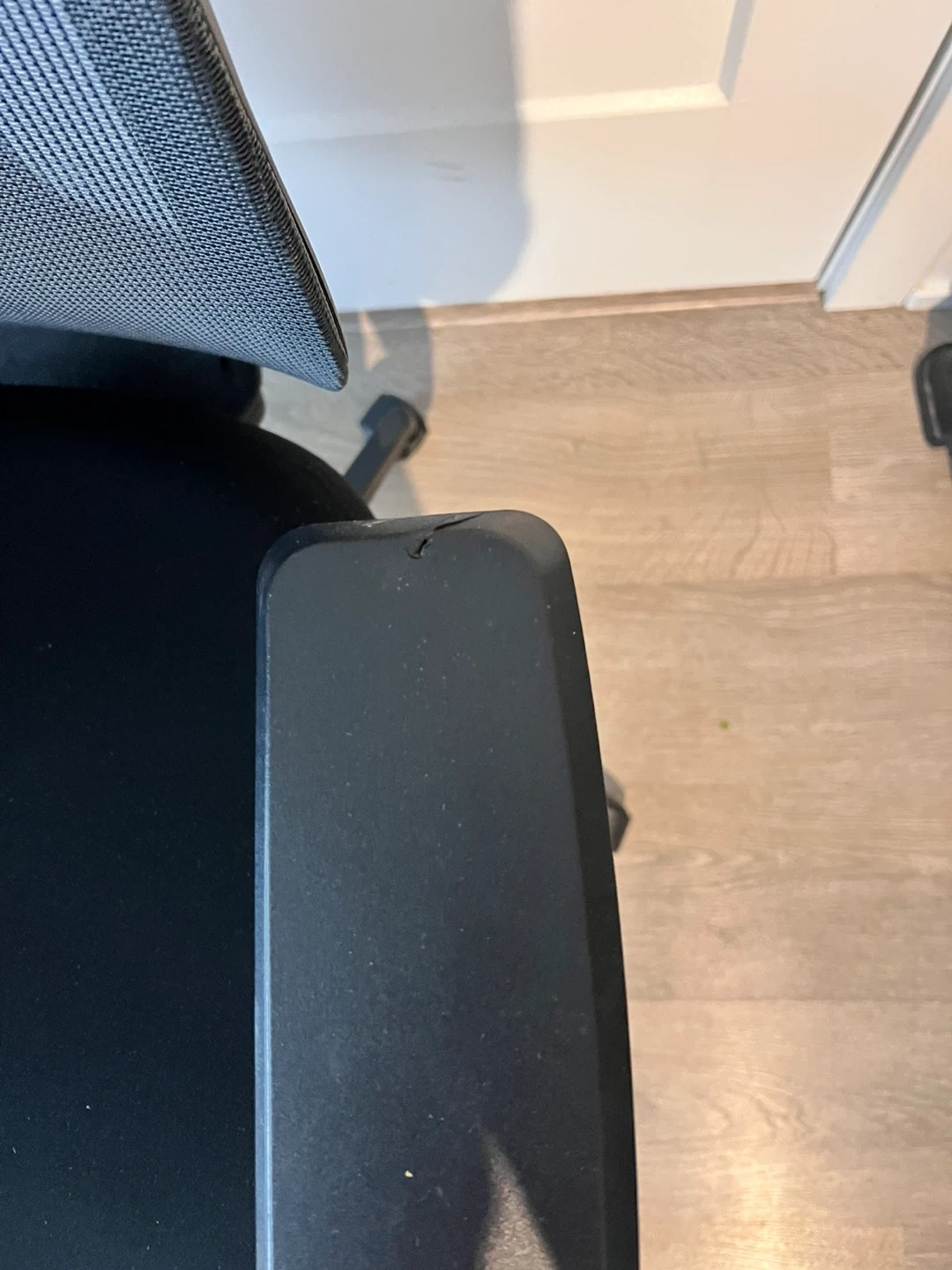 Selling a True Innovations mesh office chair. It features a breathable mesh back and adjustable lumbar support. It also has pneumatic height adjustment and a tilt-lock feature. There is a small crack on one of the armrests.