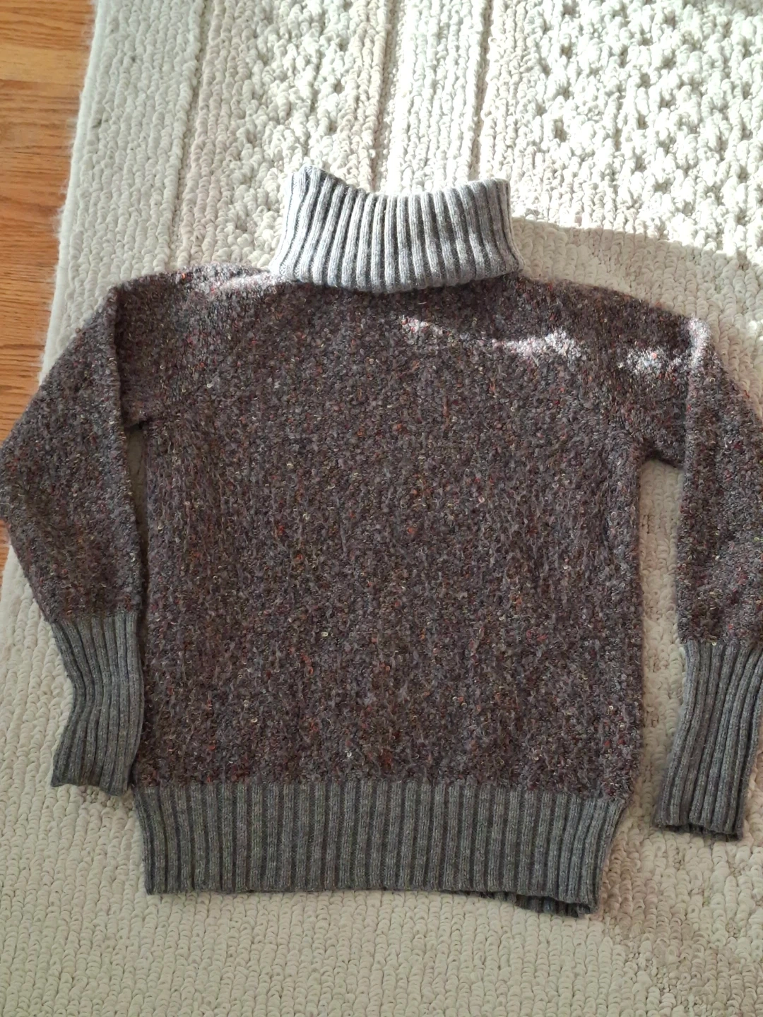 Cozy Cynthia Rowley turtleneck sweater in size small! It's in great condition and ready to keep you warm on chilly days. The sweater features a unique textured knit with flecks of colour throughout, adding a touch of visual interest. Perfect for layering or wearing on its own!