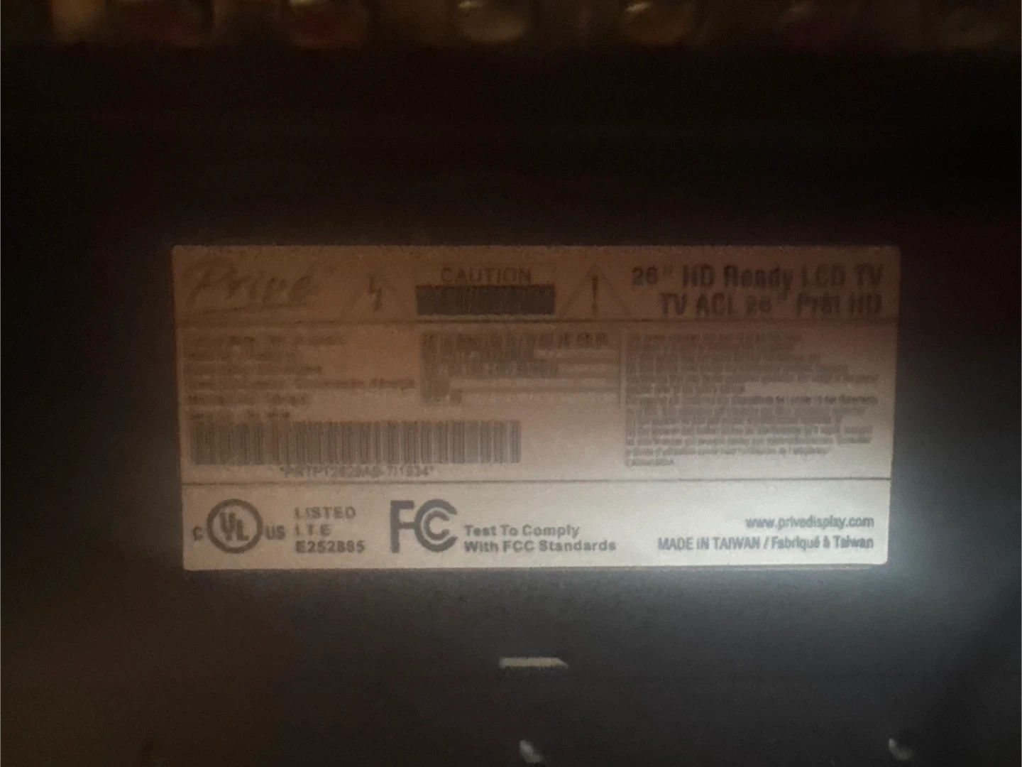 Selling a Prive 26" HD Ready LCD TV. It's in used condition, but still works. It comes as is, no box or remote included