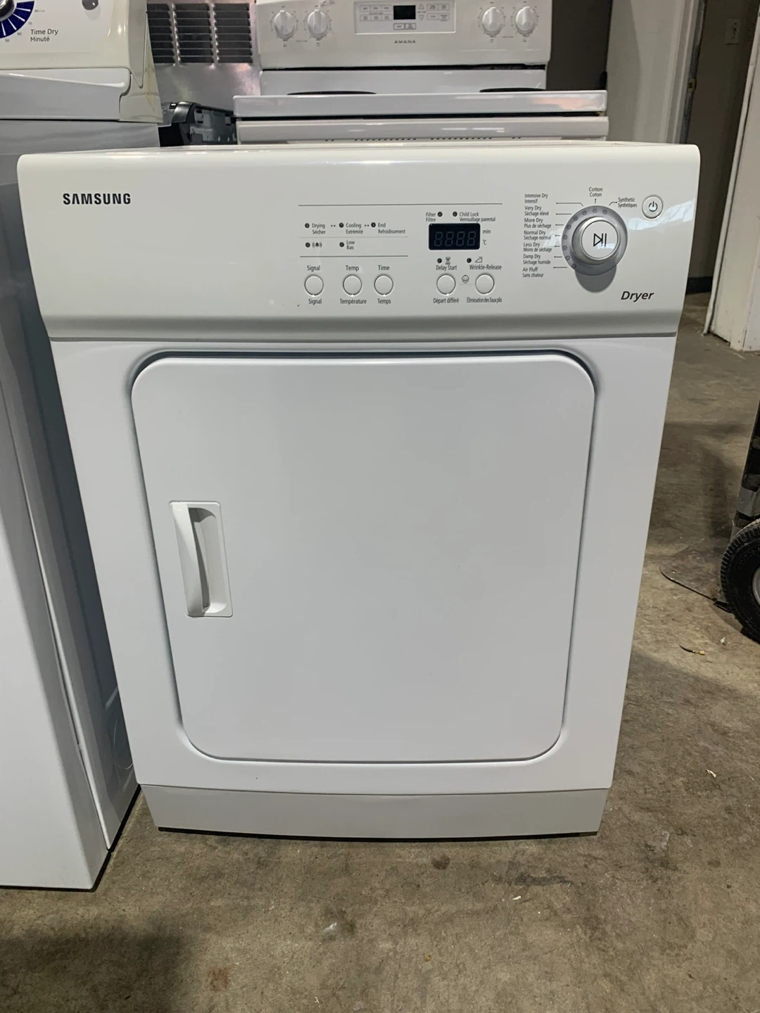 Selling a Samsung dryer in white. It has different settings for drying, including options for temperature and time. A great appliance for your laundry needs!