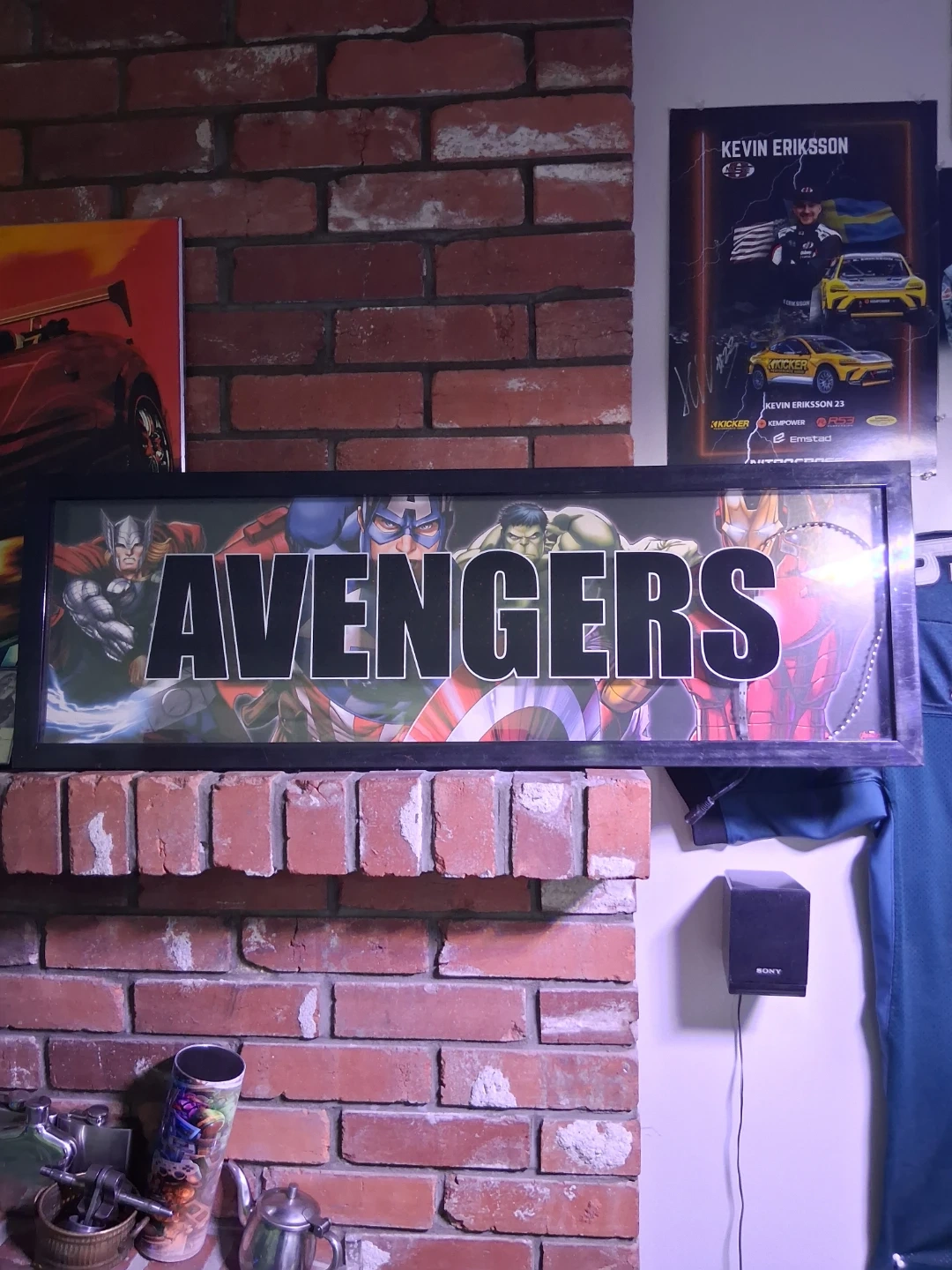 Selling a framed Avengers artwork piece! It features a vibrant design with classic characters. Perfect for any Marvel fan's collection or to add a pop of colour to your space