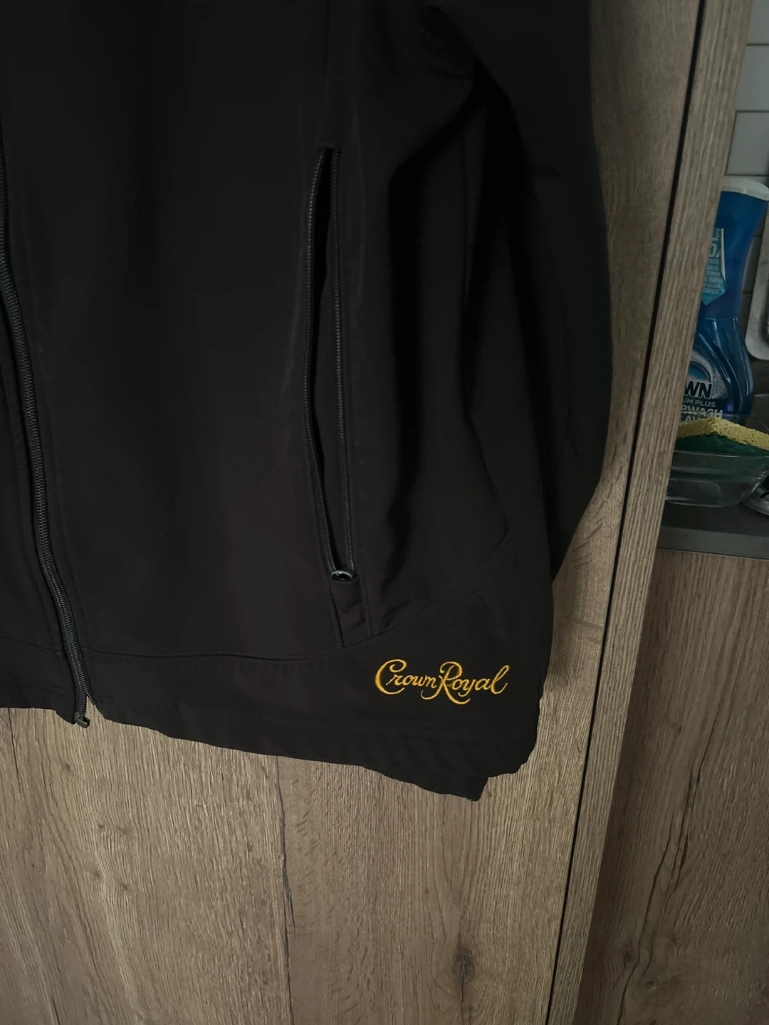 Selling a Bauer jacket with Crown Royal branding. It's black and features the Bauer logo on the front and back, along with the Crown Royal logo near the bottom. Great for any hockey fan!