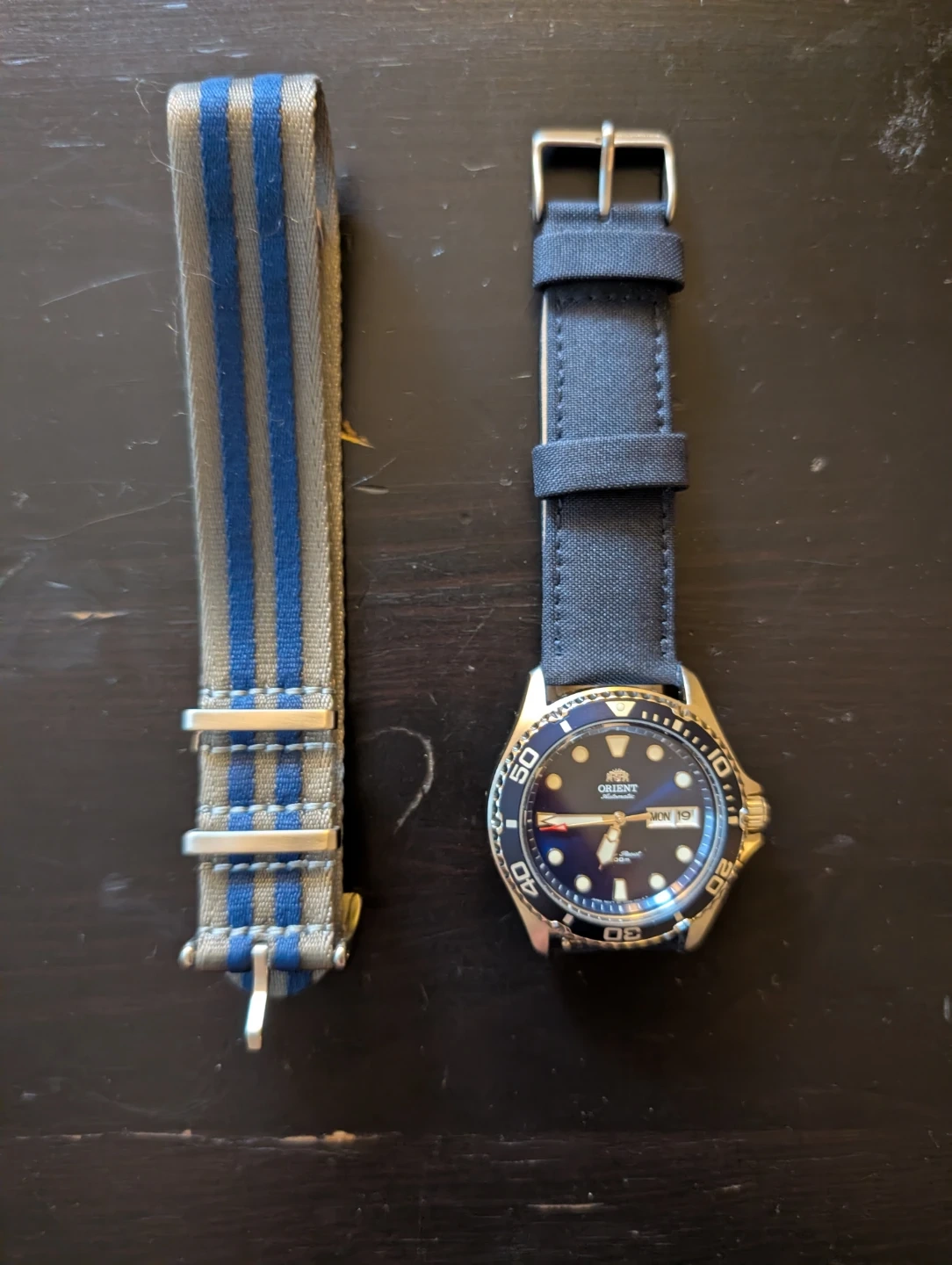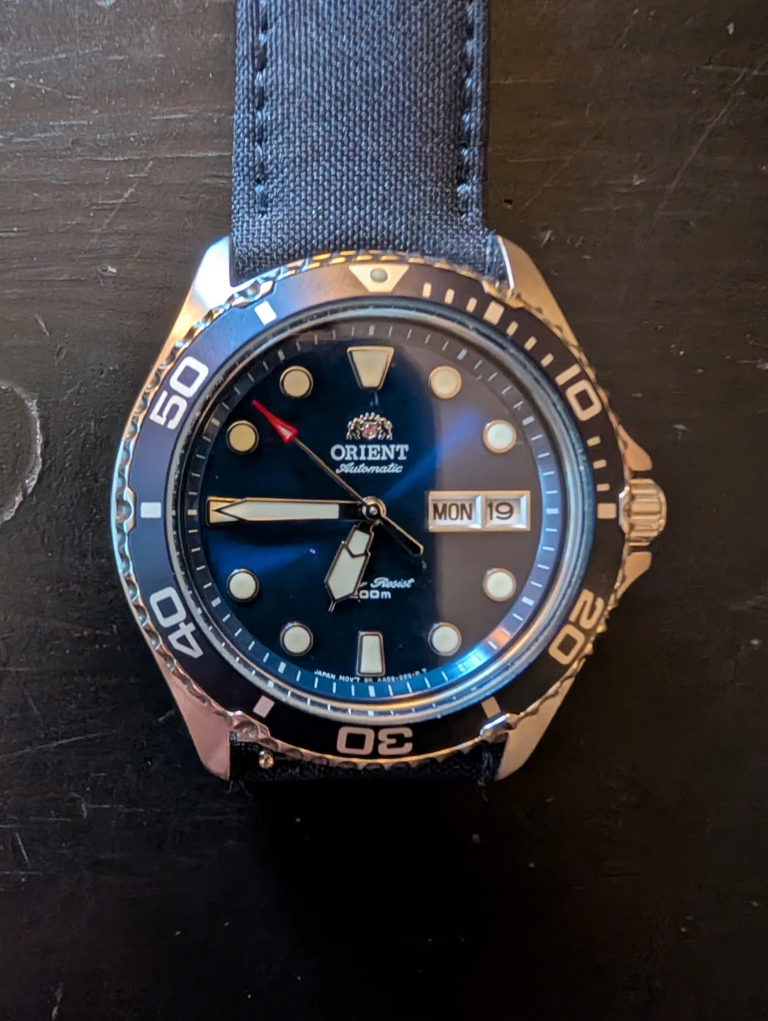 Buy & SellOrient Ray 2 Automatic Diver WatchOrient Ray 2 Automatic Diver Watch$175Orient automatic diver watch with a blue face. Comes with two straps: a blue canvas strap and a blue/grey striped NATO strapConditionLike newSize42mmBrandOrientWHERE TO MEETCheck LocationView MapSELLERverifiedAllanTrout Lake48738 reviews2 chats·2 favorites·83 viewsSEND CHAT TO SELLERHi Allan! I’m interested in your listing.Hi Allan! I’m interested in your listing.Get the Karrot app to chatSign In to chat