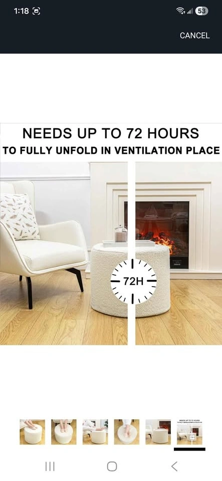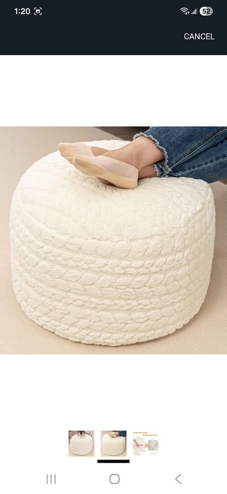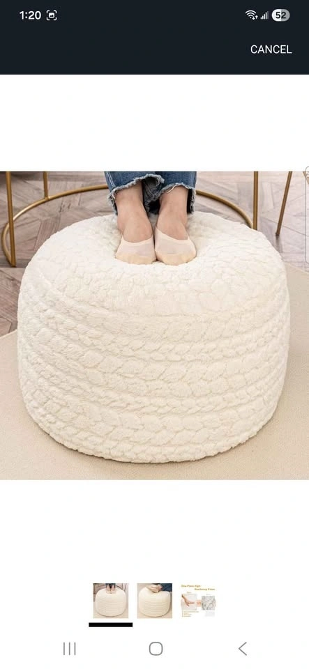 Brand New Asuprui Round Ottoman Pouf Ottoman Foot Stool Seat Faux Fur Bean Bag Foot Rest Floor Chair Leg Rest for Living Room, Bedroom or Wedding Gifts 20x20x14 Inches Cream.