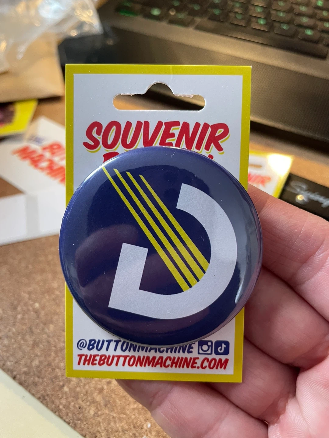 New with packaging. 2.25” pin-back button with the SkyDome logo on it.