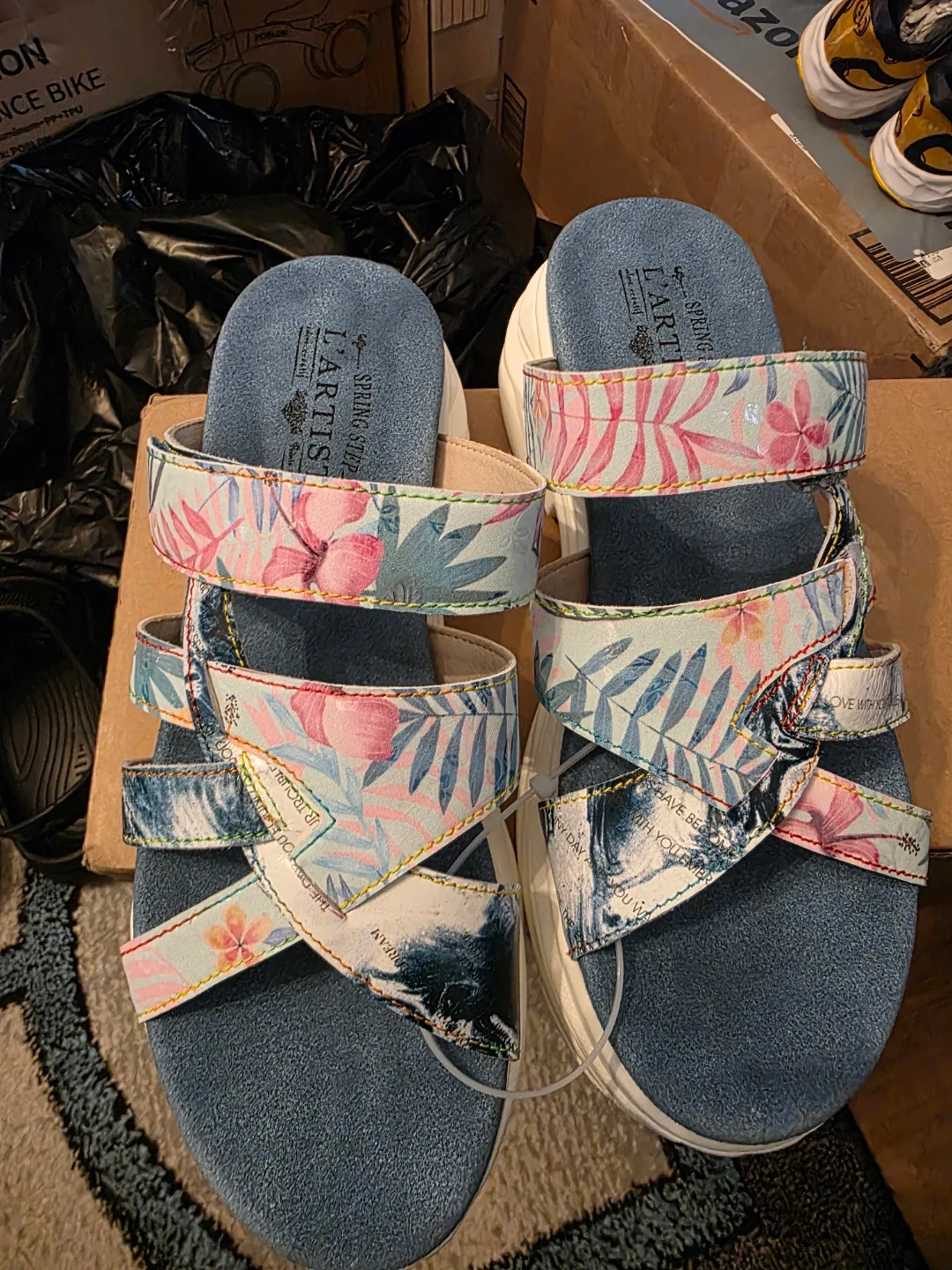 These L'Artiste by Spring Step sandals are a beautiful addition to any wardrobe! They feature a unique floral design and are super comfortable for everyday wear. The size is US 8.