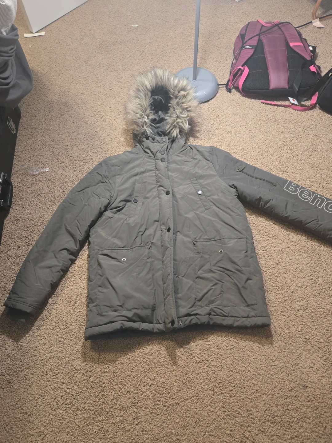 Selling a Bench winter coat and a pair of striped Snow pants. Both items are in good condition and ready for a new owner! The coat is perfect for keeping warm during the colder months.