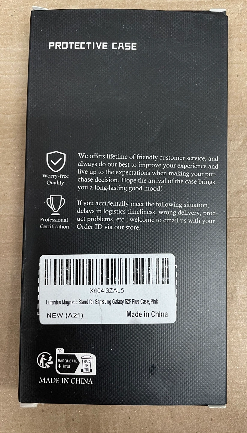 Selling a brand new Lufanbis magnetic stand case for a Samsung Galaxy S25 Plus in pink! It's a protective case for your smartphone and comes in its original box