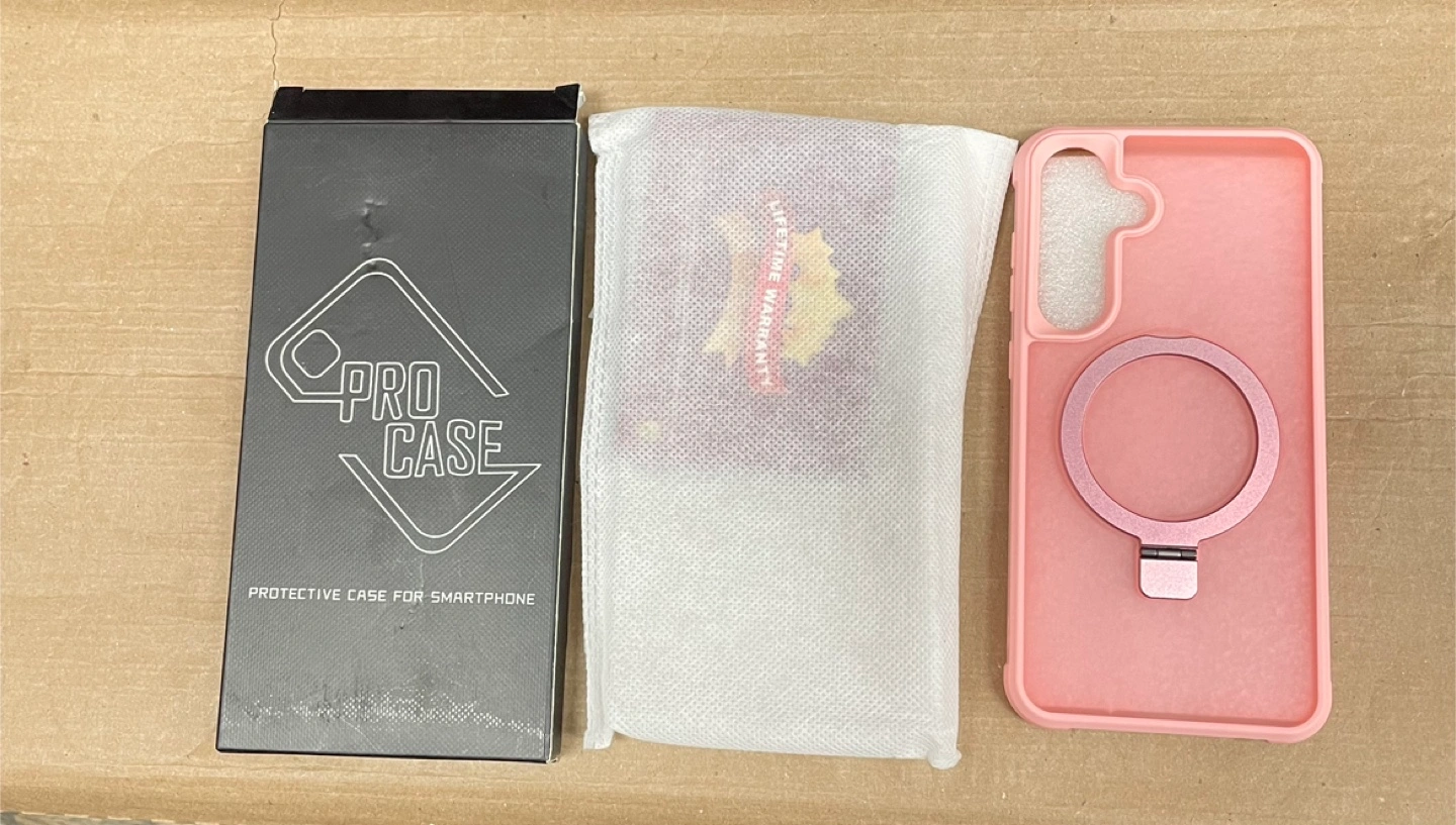 Selling a brand new Lufanbis magnetic stand case for a Samsung Galaxy S25 Plus in pink! It's a protective case for your smartphone and comes in its original box