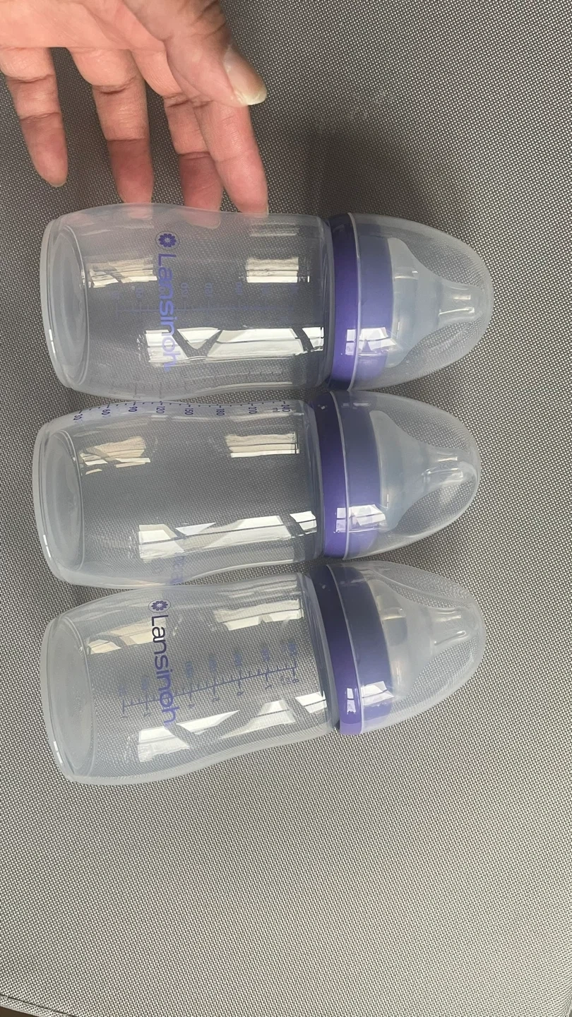 Selling a set of three Lansinoh baby bottles. Each bottle holds 8 oz (240 ml). They are in great condition and ready for your little one! I only tried once and decide wasnt a good fit they washed and sterilized