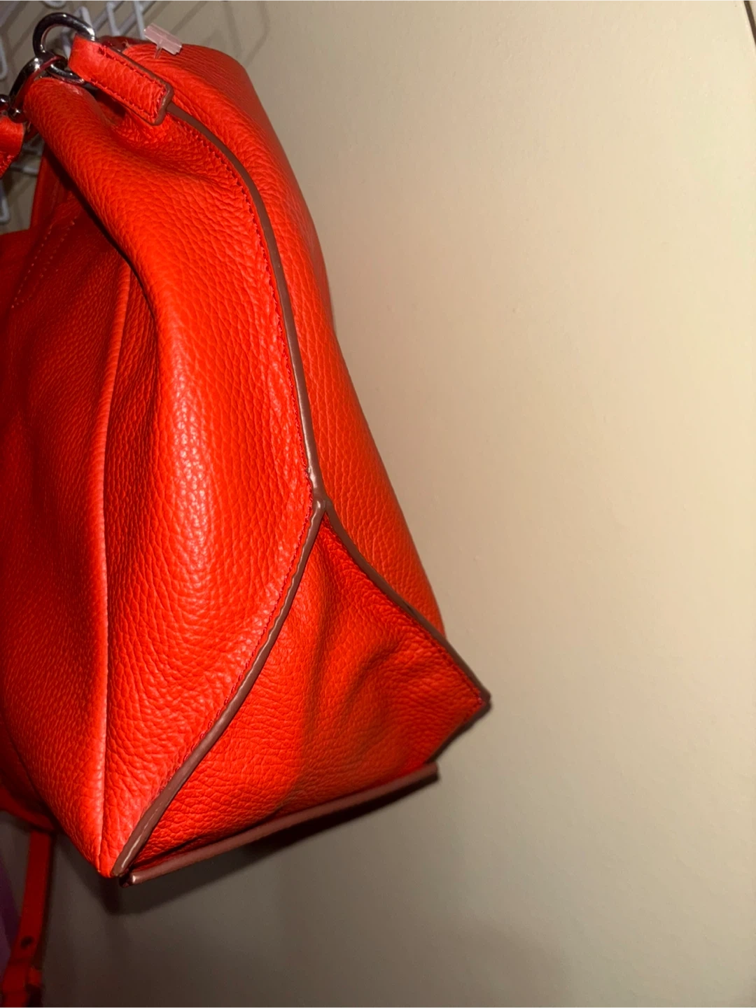 Brighten up your day with this vibrant orange leather tote bag from Banana Republic! It's a stylish and practical accessory for carrying your essentials.