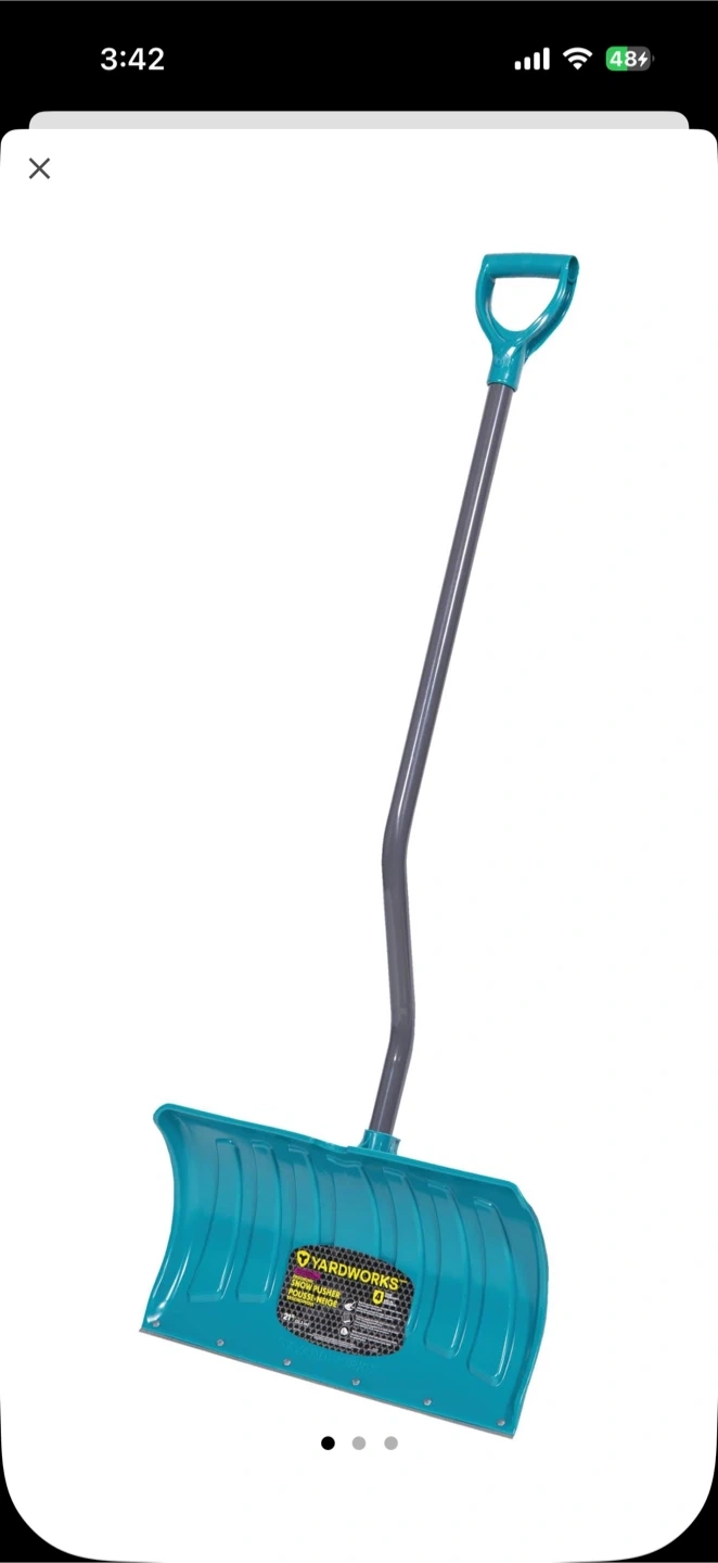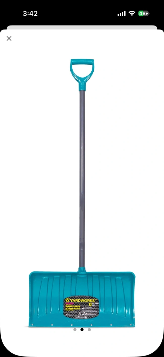 I'm selling a Yardworks Steel Edge Ergo Snow Pusher. It's designed for maximum durability on large, even surfaces.