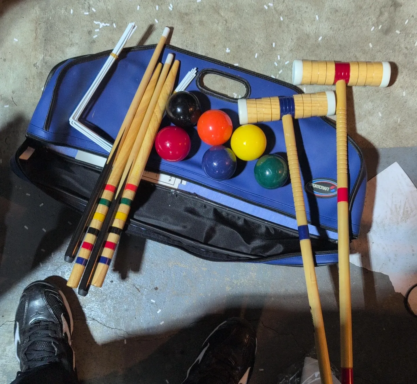 Selling a Sportcraft croquet set, complete with mallets, balls, wickets, and a convenient carrying case. It's perfect for some outdoor fun with friends and family!