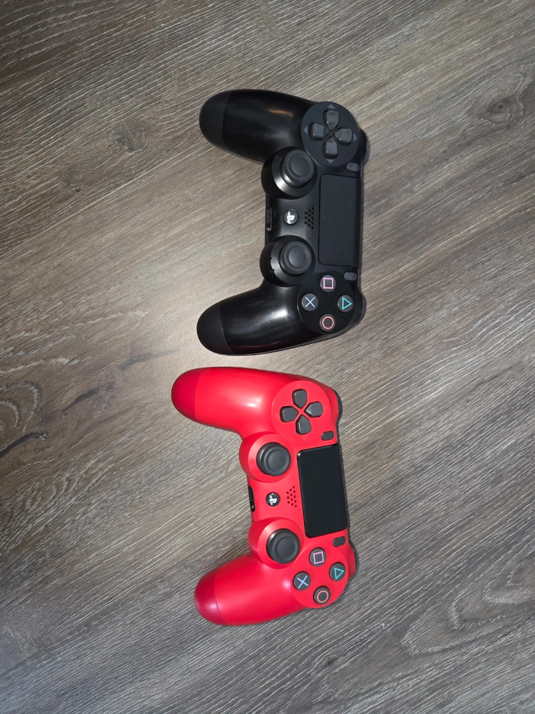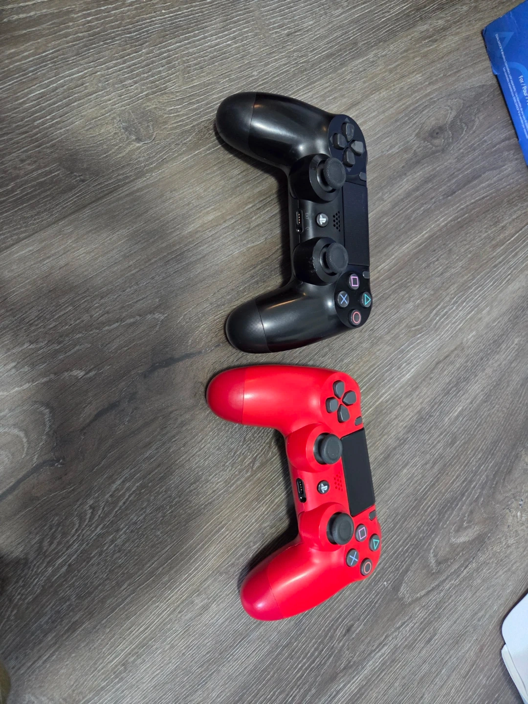 Selling two PS4 Dualshock controllers, one black and one red! They are in great condition and ready for a new owner. Comes with the charging station too.