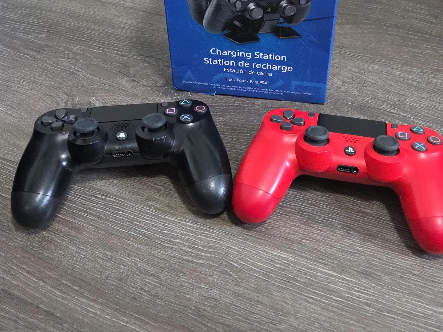 PS4 Dualshock Controllers (black & red) & Charging Station