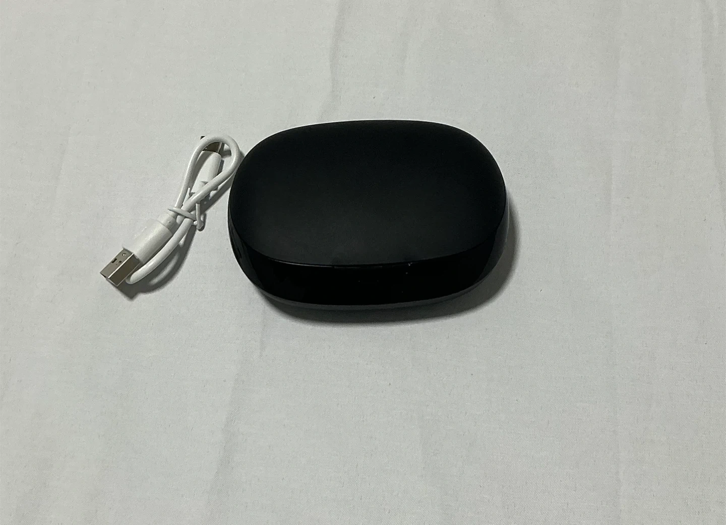 Selling a pair of wireless Bluetooth earbuds in black. They feature a charging case with a battery level display and come with a user manual and charging cable. The earbuds offer 6 hours of single ear use and have an 80-hour charging range. Charging duration is about 1.5 hours. Great for on-the-go listening!
