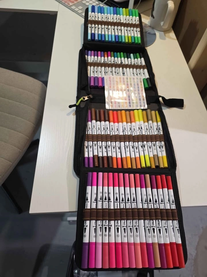 Selling a large Ohuhu dual-tip art marker set in the original zippered carrying case. Perfect for artists, illustrators, designers, bullet journaling, colouring, or lettering.
