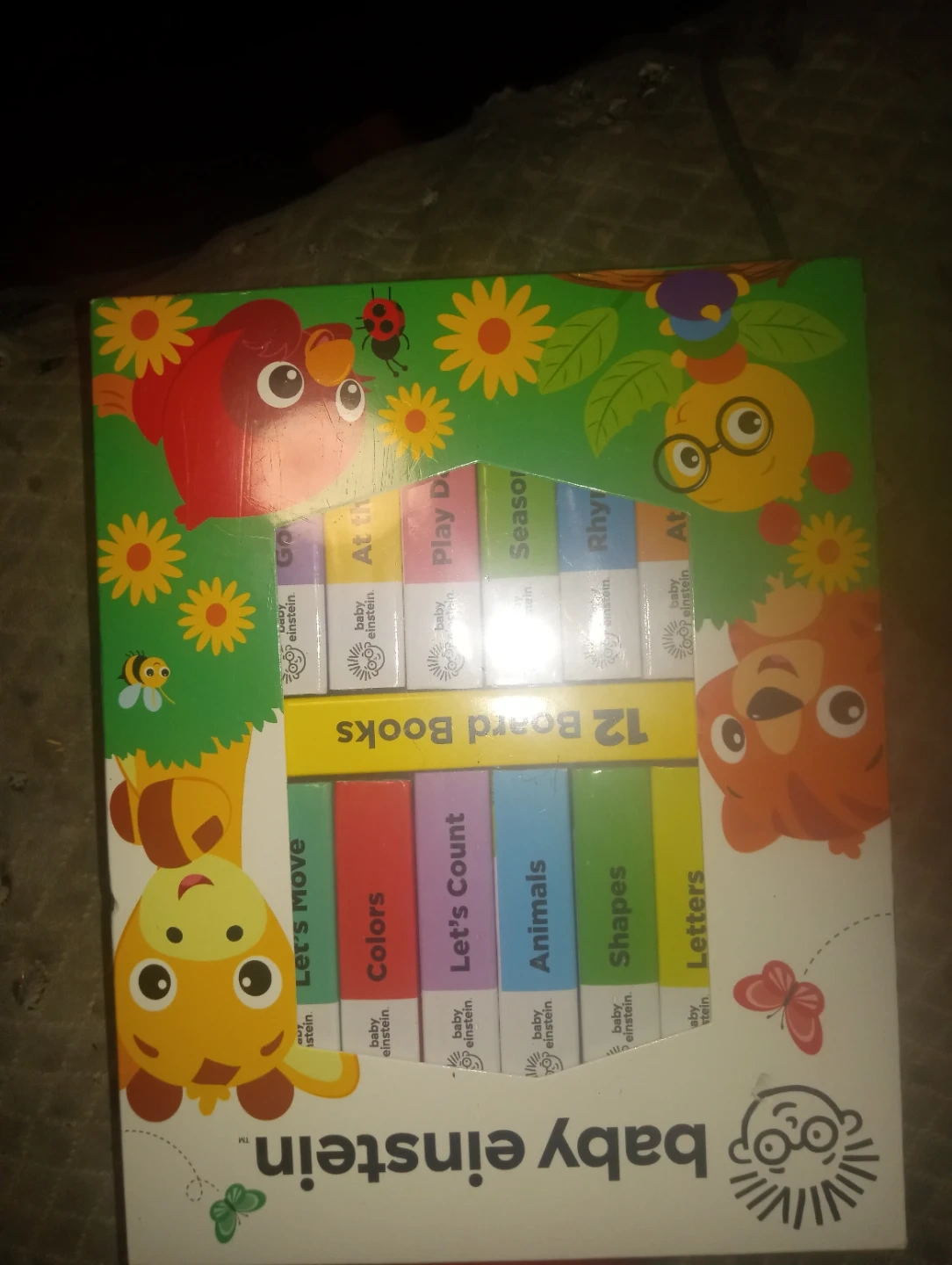I'm selling a Baby Einstein 12 Board Books set! These sturdy board books feature early learning fun with Baby Einstein friends. Includes books on letters, shapes, let's move, let's count, play day, at the beach, at the park, rhymes, seasons, animals, colors, and good night