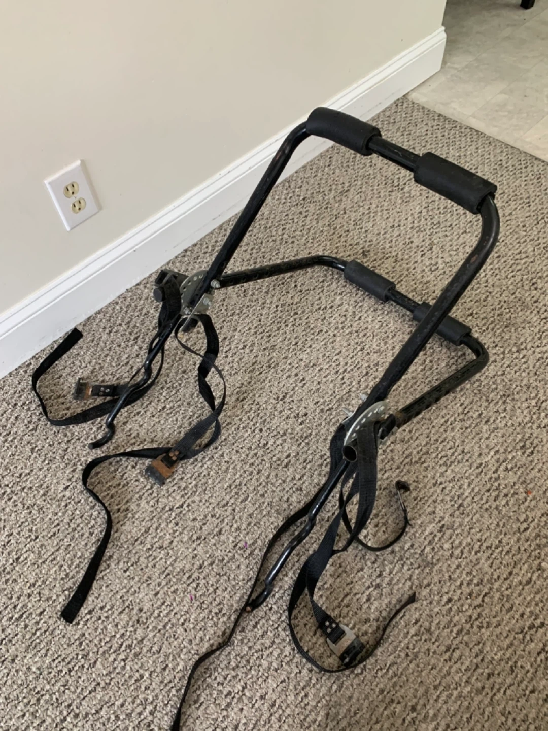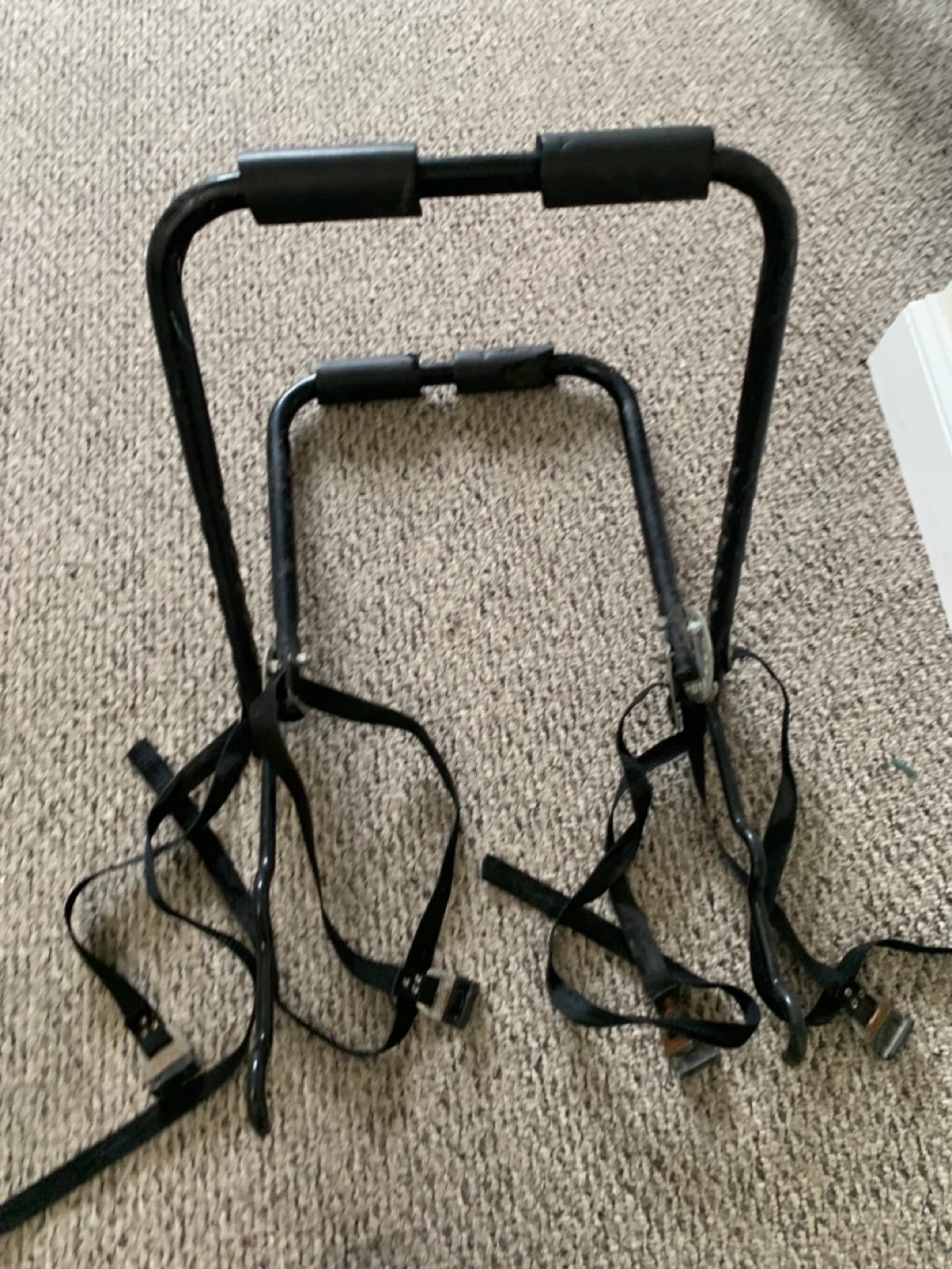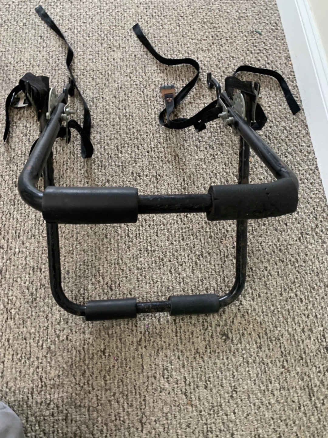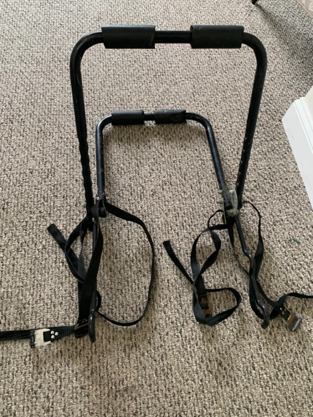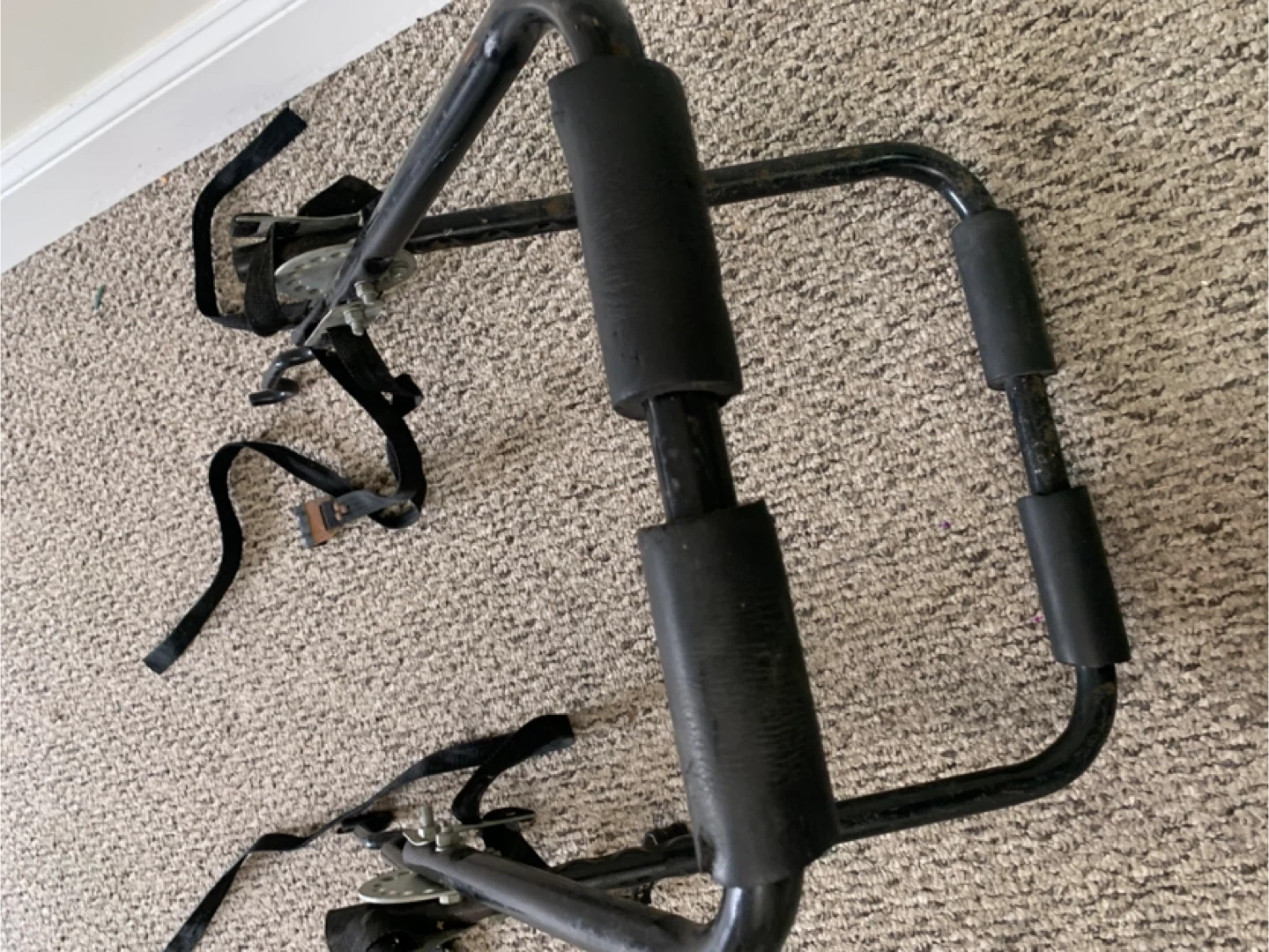 Bike rack for sale, trunk mount style. It's in used condition, but still works great for transporting your bikes. Straps and mounting hardware included