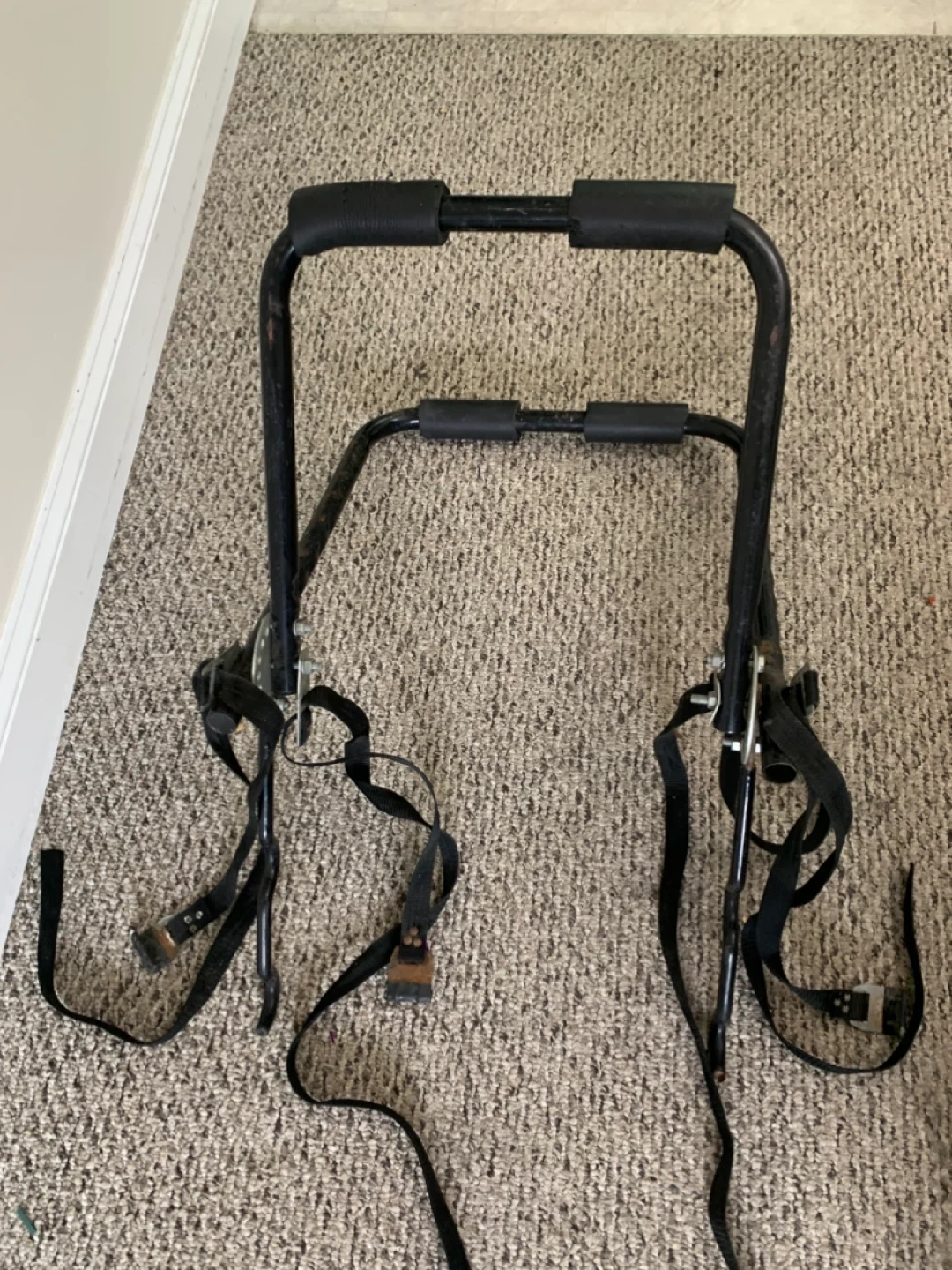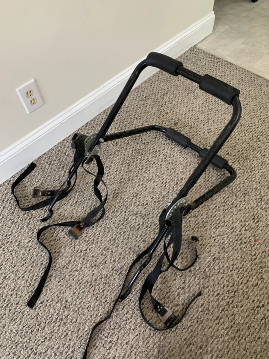 Bike rack for sale, trunk mount style. It's in used condition, but still works great for transporting your bikes. Straps and mounting hardware included