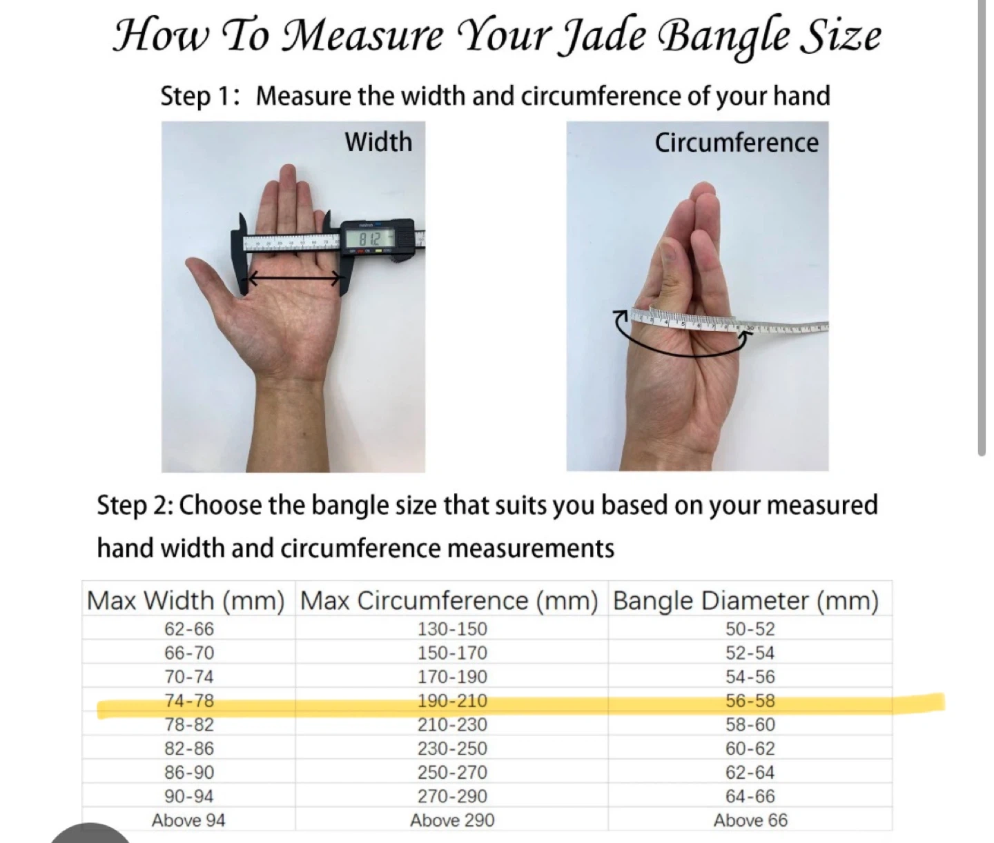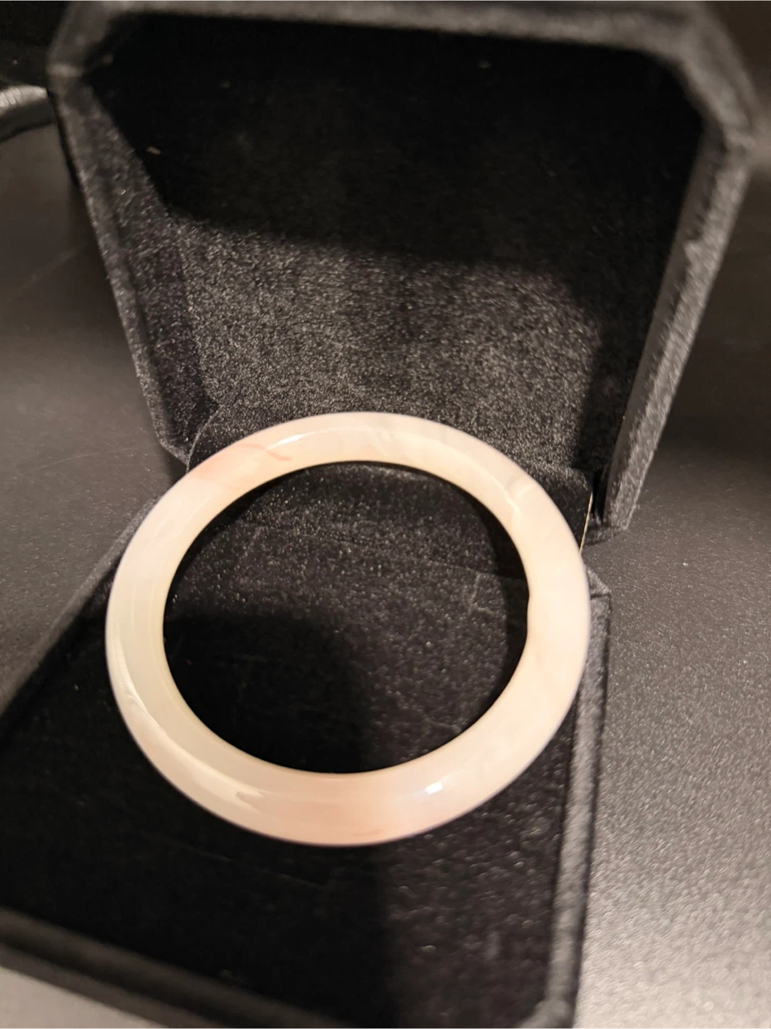 Selling two jade bangle bracelets. One is a light pink colour and the other is light green. Comes with the box. Please see the size chart in the photos to determine if the bangle is the right size for you!