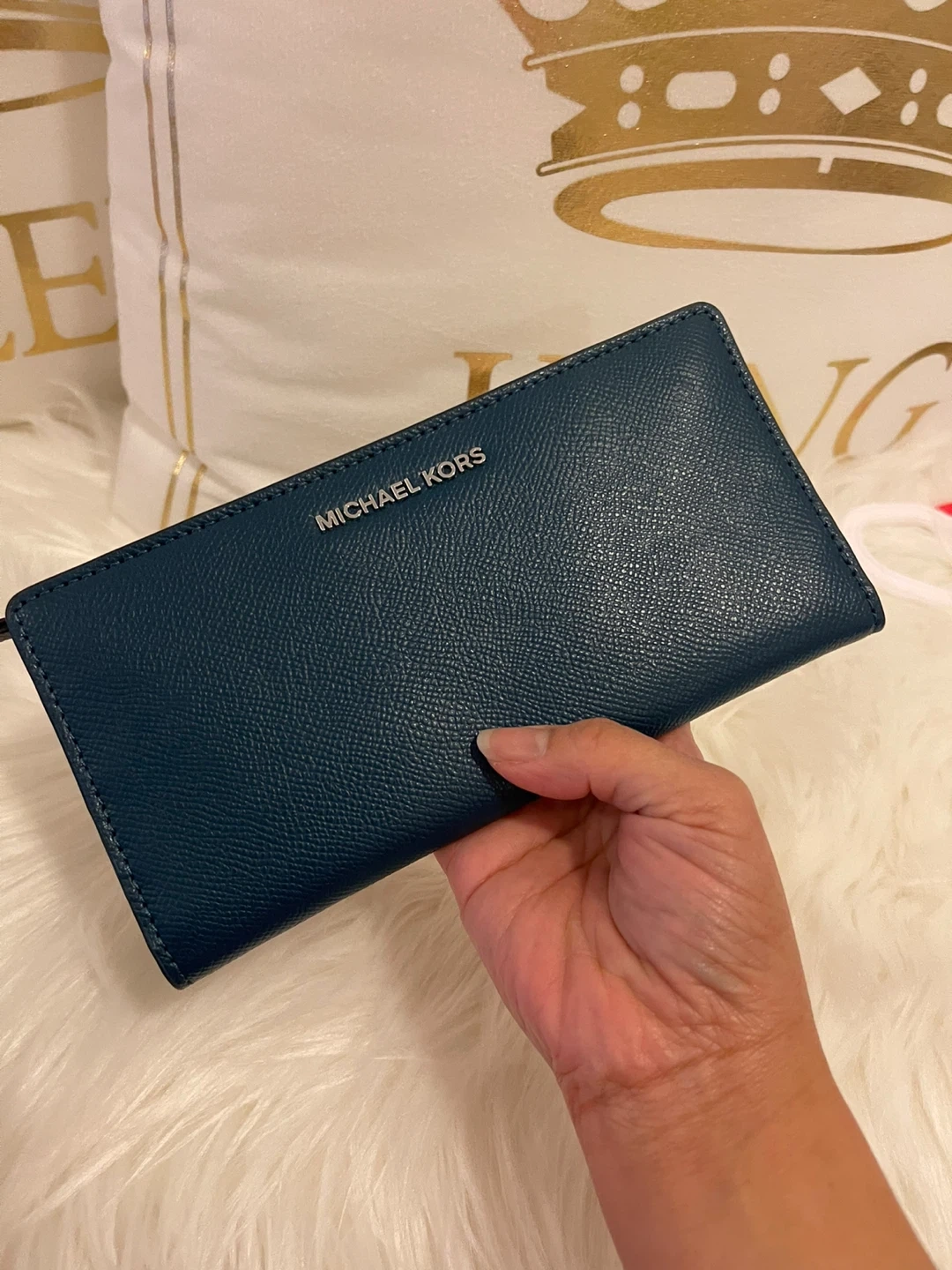 Like new : used only 3-5 times for only few hours .Constructed from Saffiano leather, this Jet Set wallet is designed in an understated, slim profile that opens to reveal a color-block interior with multiple pockets for storing your cards, cash and ID. It’s a perfect for carrying only the essentials when you need to travel light.