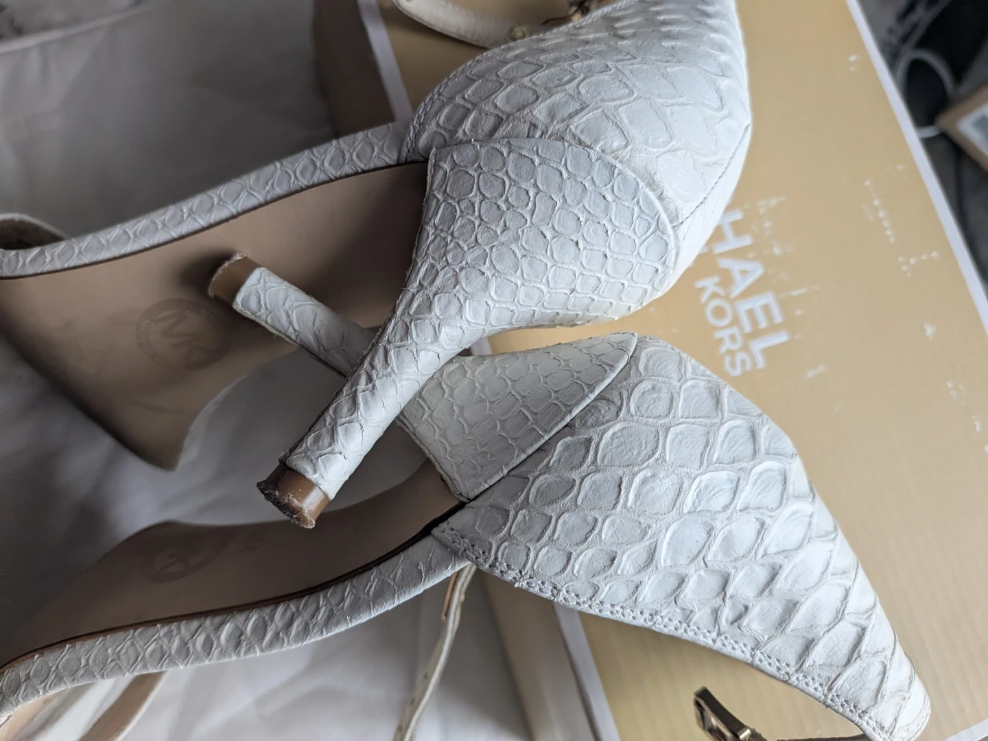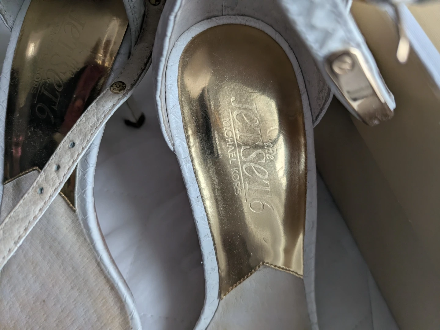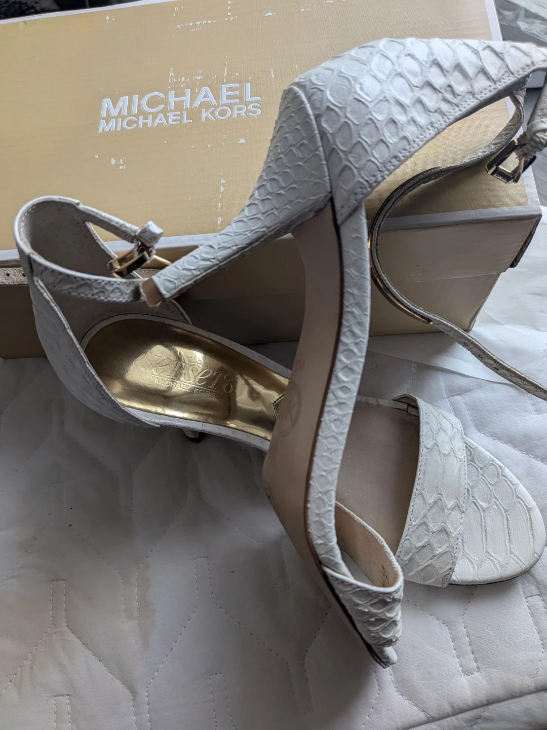 Buy & SellMichael Kors Jet Set White HeelsMichael Kors Jet Set White Heels$50Selling a pair of Michael Kors Jet Set heels in white. These stylish heels come with their original box. They're perfect for dressing up any outfit!ConditionGoodSize6WHERE TO MEETMillbourne Market MallView MapSELLERverifiedVirgieRichfield650 reviews0 chats·0 favorites·14 viewsSEND CHAT TO SELLERHi Virgie! I’m interested in your listing.Hi Virgie! I’m interested in your listing.Get the Karrot app to chatSign In to chat