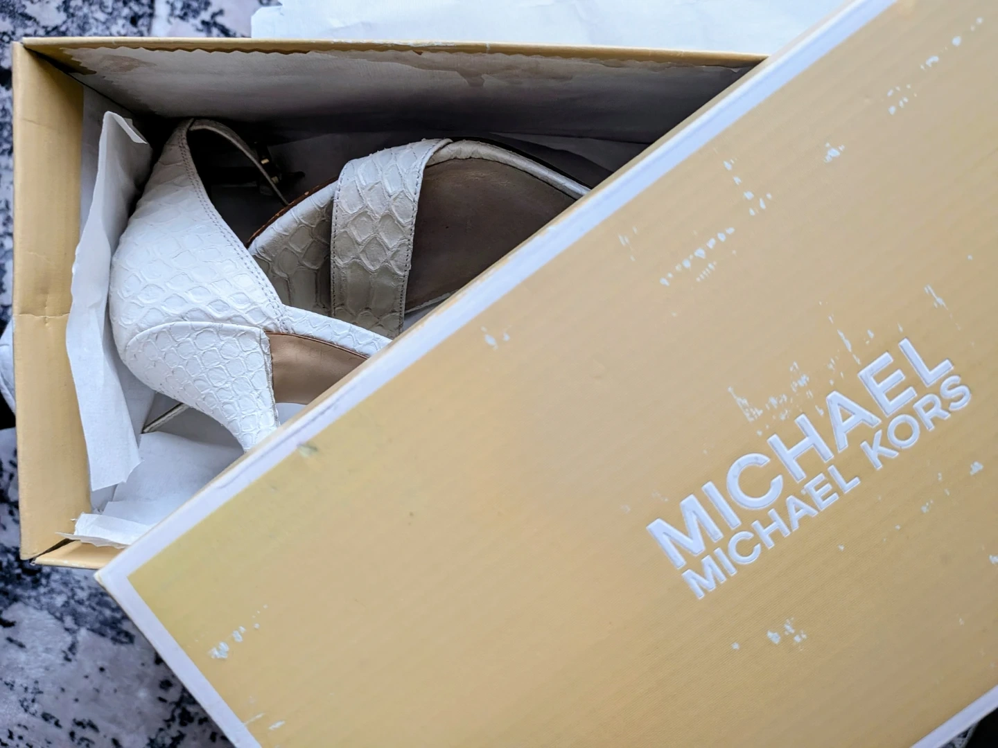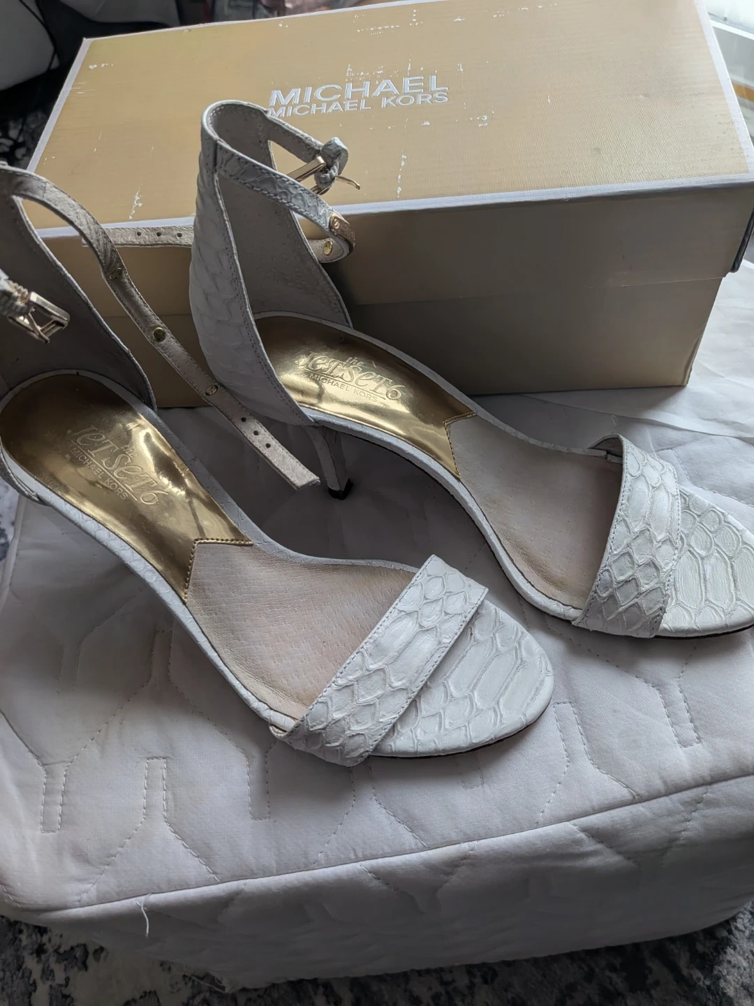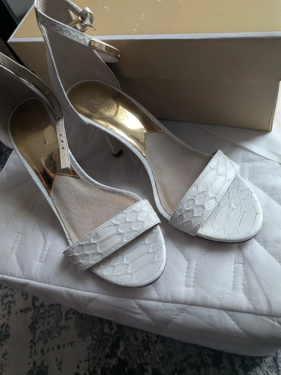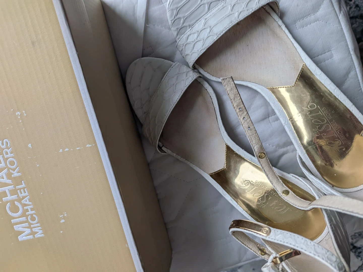 Buy & SellMichael Kors Jet Set White HeelsMichael Kors Jet Set White Heels$50Selling a pair of Michael Kors Jet Set heels in white. These stylish heels come with their original box. They're perfect for dressing up any outfit!ConditionGoodSize6WHERE TO MEETMillbourne Market MallView MapSELLERverifiedVirgieRichfield650 reviews0 chats·0 favorites·14 viewsSEND CHAT TO SELLERHi Virgie! I’m interested in your listing.Hi Virgie! I’m interested in your listing.Get the Karrot app to chatSign In to chat