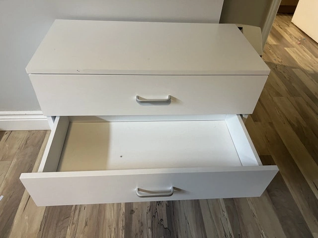 Small white dresser. Hardly used. Great for baby, toddler clothes or as decorative peice with light storage. Ordered from Wayfair less than a year ago.