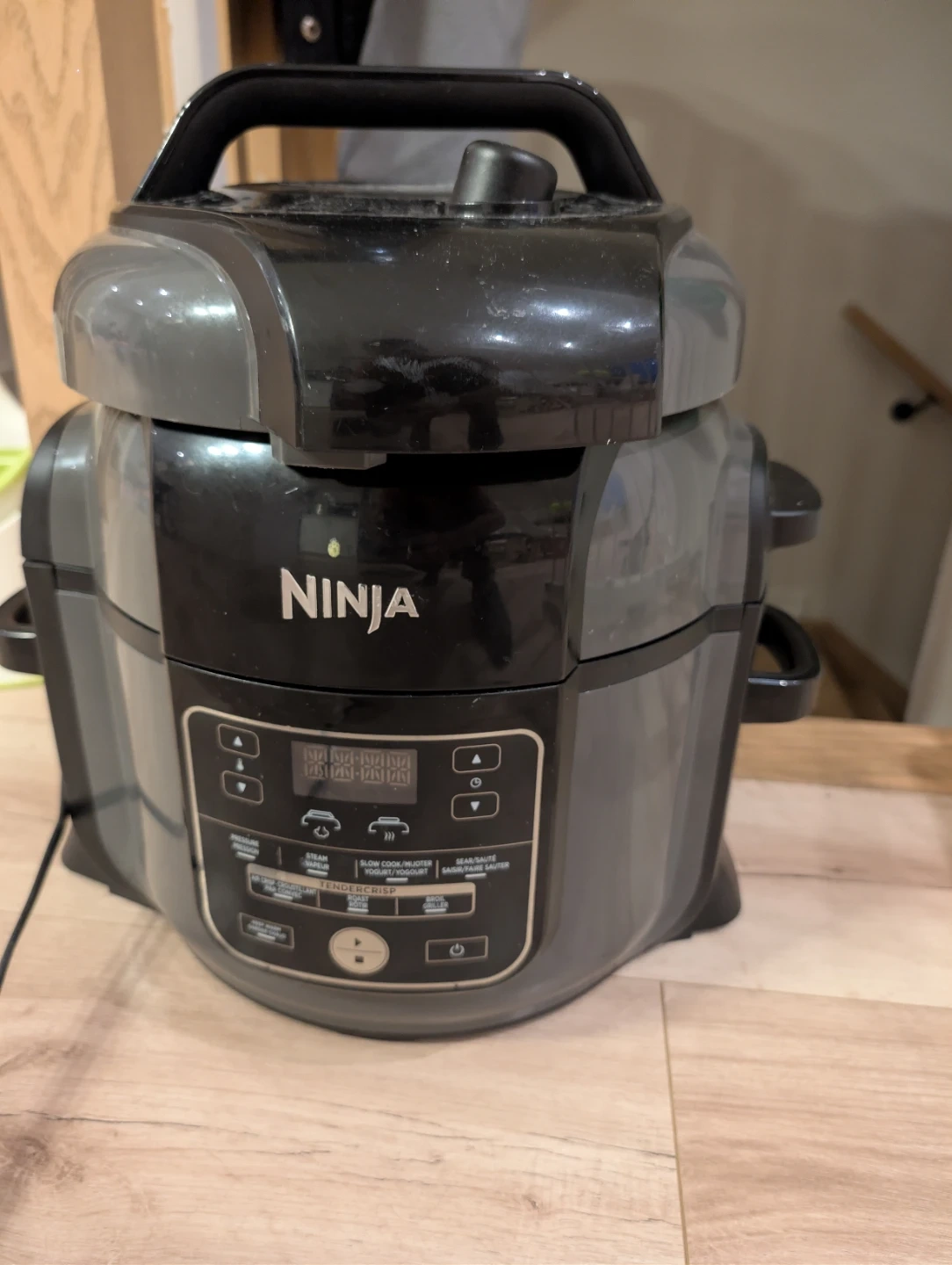 Selling a Ninja Foodi pressure cooker. Several months old. It's in great condition and ready for a new kitchen! It has multiple functions including pressure cooking, steaming, slow cooking, searing/sautéing. Selling because my daughter has Celiac and need to replace to new.