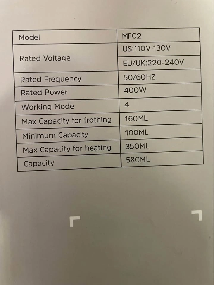 This is a 4-in-1 automatic electric milk frother. It can be used for hot frothing, heating milk, cold frothing, and heating chocolate milk. It has a capacity of up to 350ml.