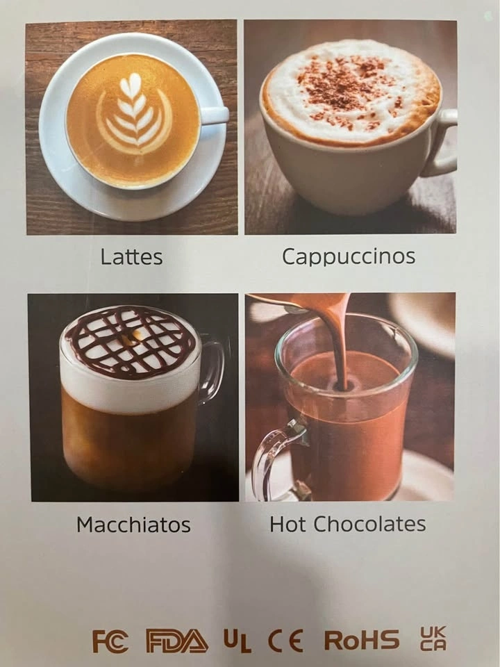 This is a 4-in-1 automatic electric milk frother. It can be used for hot frothing, heating milk, cold frothing, and heating chocolate milk. It has a capacity of up to 350ml.