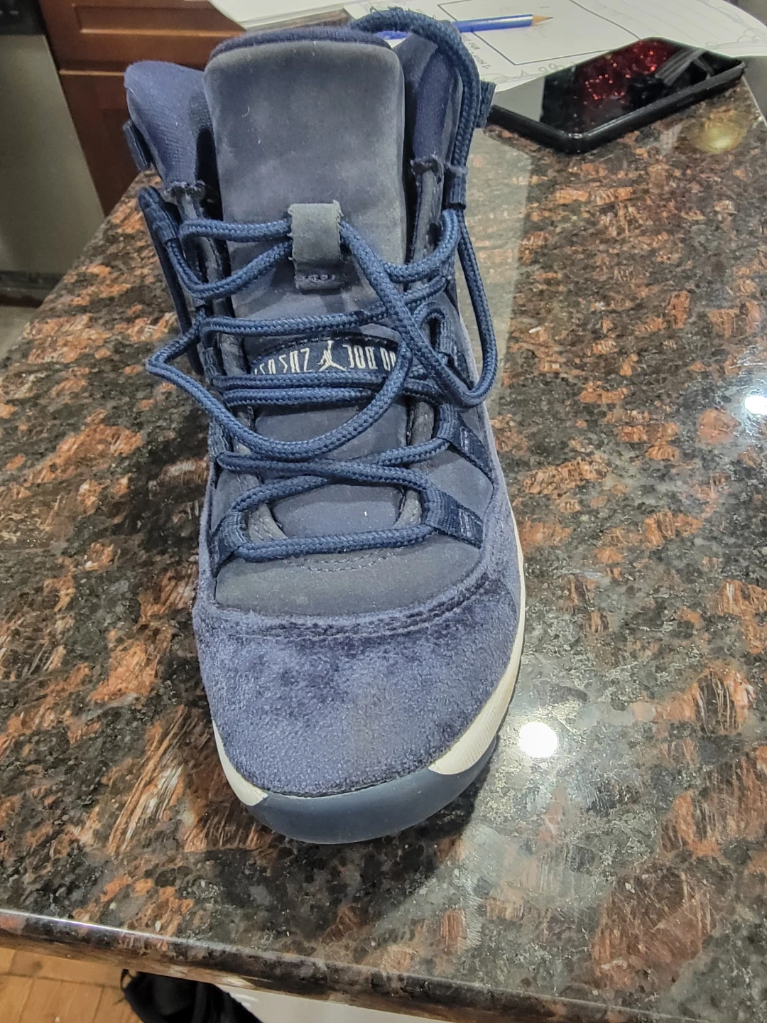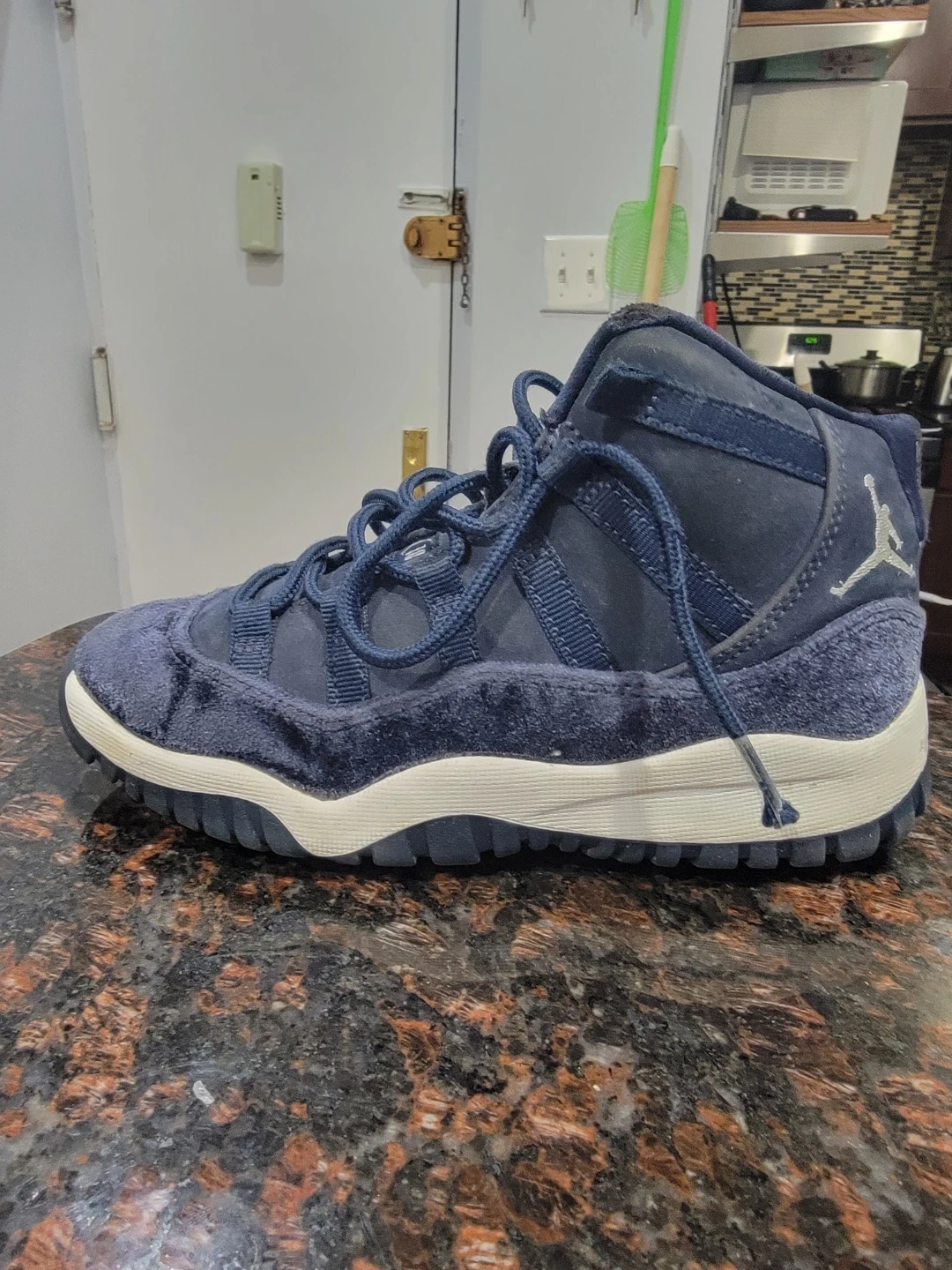 Selling a pair of Air Jordan 11 Retro in navy blue. They are in good condition and have the classic Jordan design. Great for everyday wear or for playing basketball!