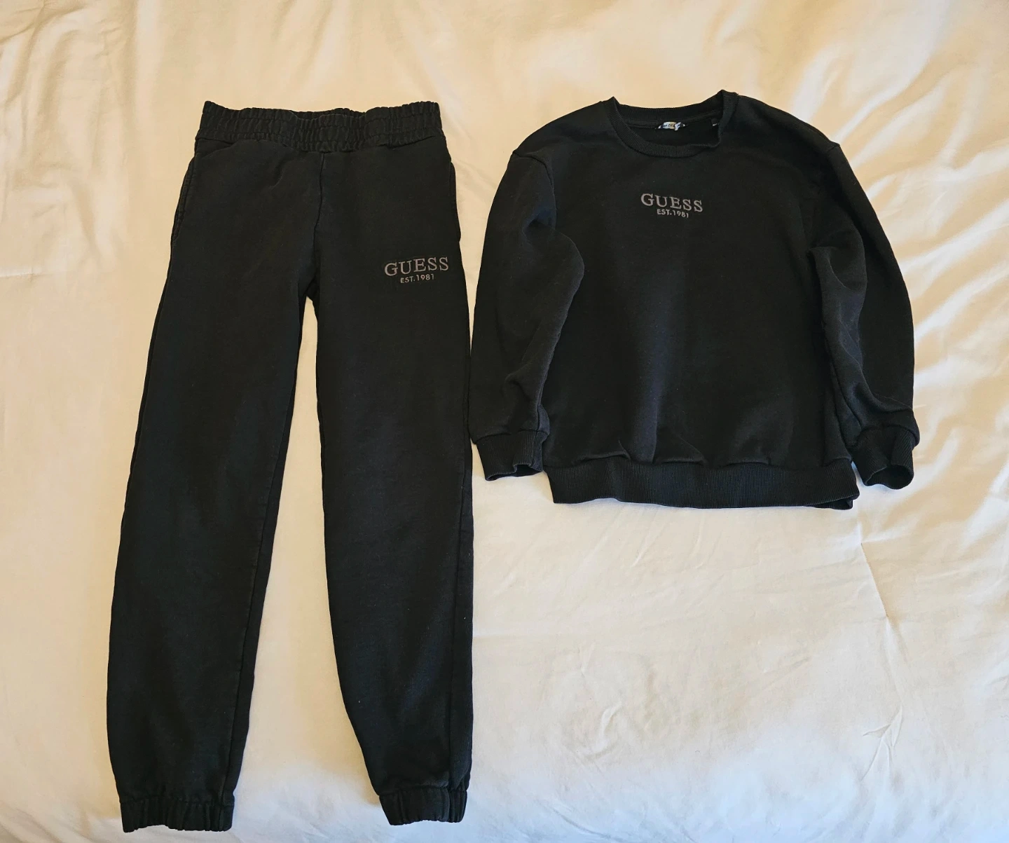 Buy & SellGuess Black Sweatpants & Sweatshirt SetGuess Black Sweatpants & Sweatshirt Set$24Selling a Guess sweatpants and sweatshirt set in black. Worn once, kids size 9ConditionLike newWHERE TO MEETChappelleView MapSELLERverifiedSoniaChappelle Area1174 reviews1 chats·2 favorites·37 viewsSEND CHAT TO SELLERHi Sonia! I’m interested in your listing.Hi Sonia! I’m interested in your listing.Get the Karrot app to chatSign In to chat