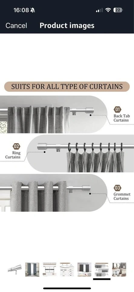 30-120inch Silver Curtain Rods 3pc