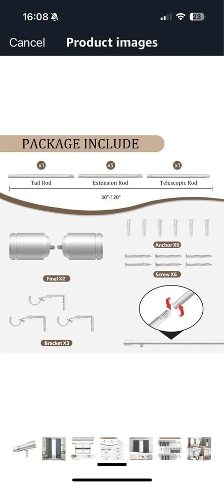 30-120inch Silver Curtain Rods 3pc