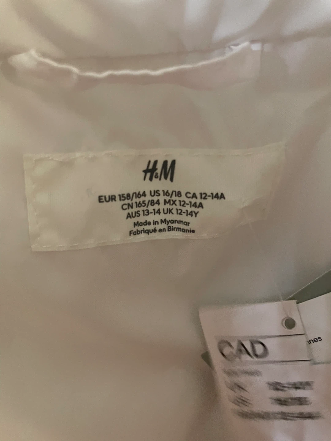 Selling a brand new with tags H&M white puffer vest! The size is 12-14 years (US 16/18). Perfect for layering and keeping cozy