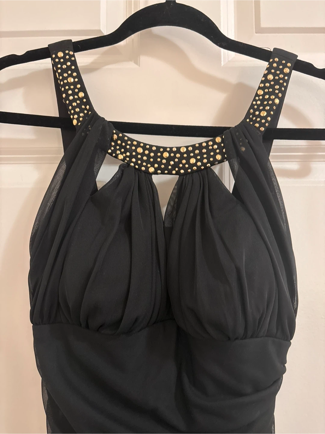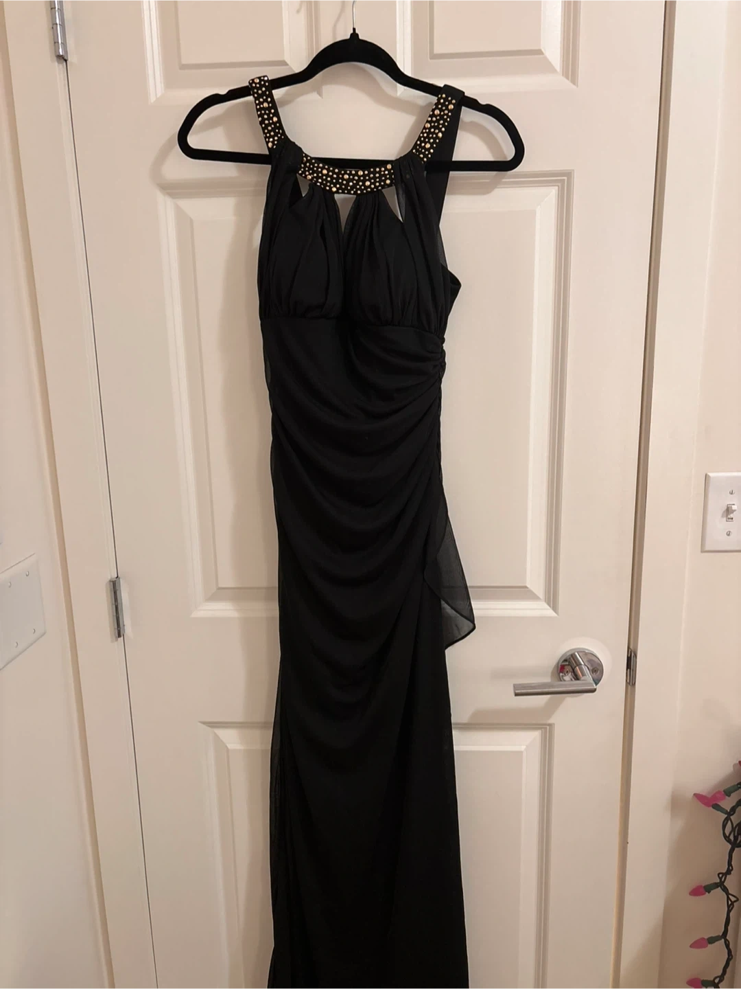 Selling a lovely black formal dress from Laura Petites! It's a size 4 and in great condition. The dress features elegant details on the straps. Perfect for a special occasion! Only worn once for my high school graduation