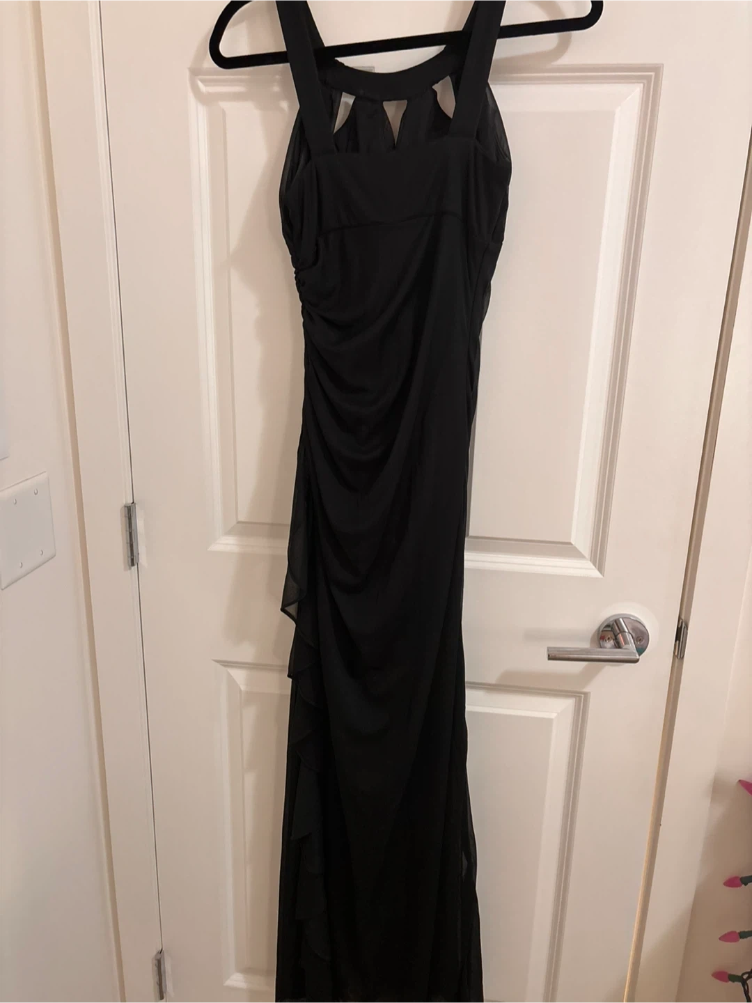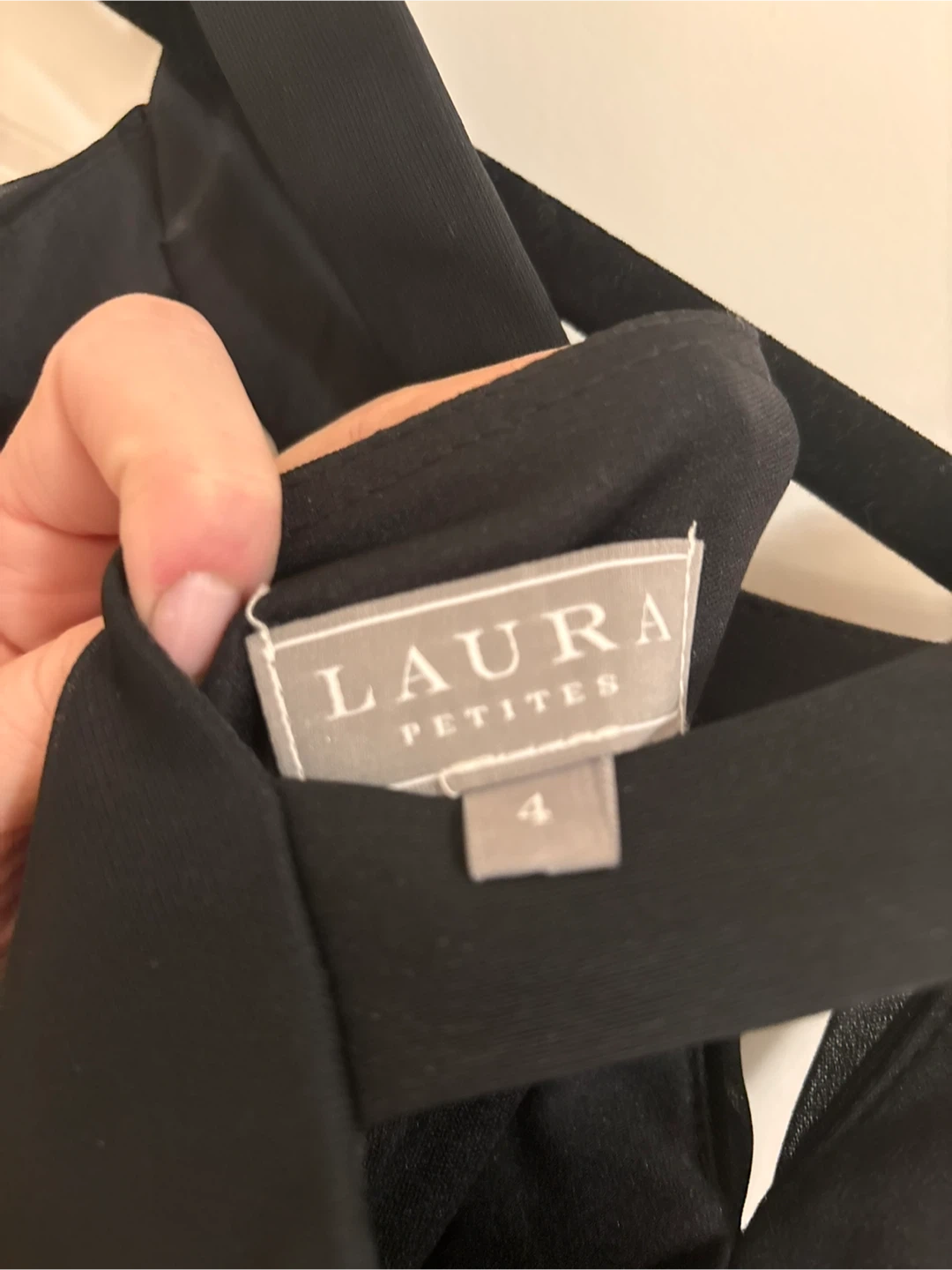 Selling a lovely black formal dress from Laura Petites! It's a size 4 and in great condition. The dress features elegant details on the straps. Perfect for a special occasion! Only worn once for my high school graduation