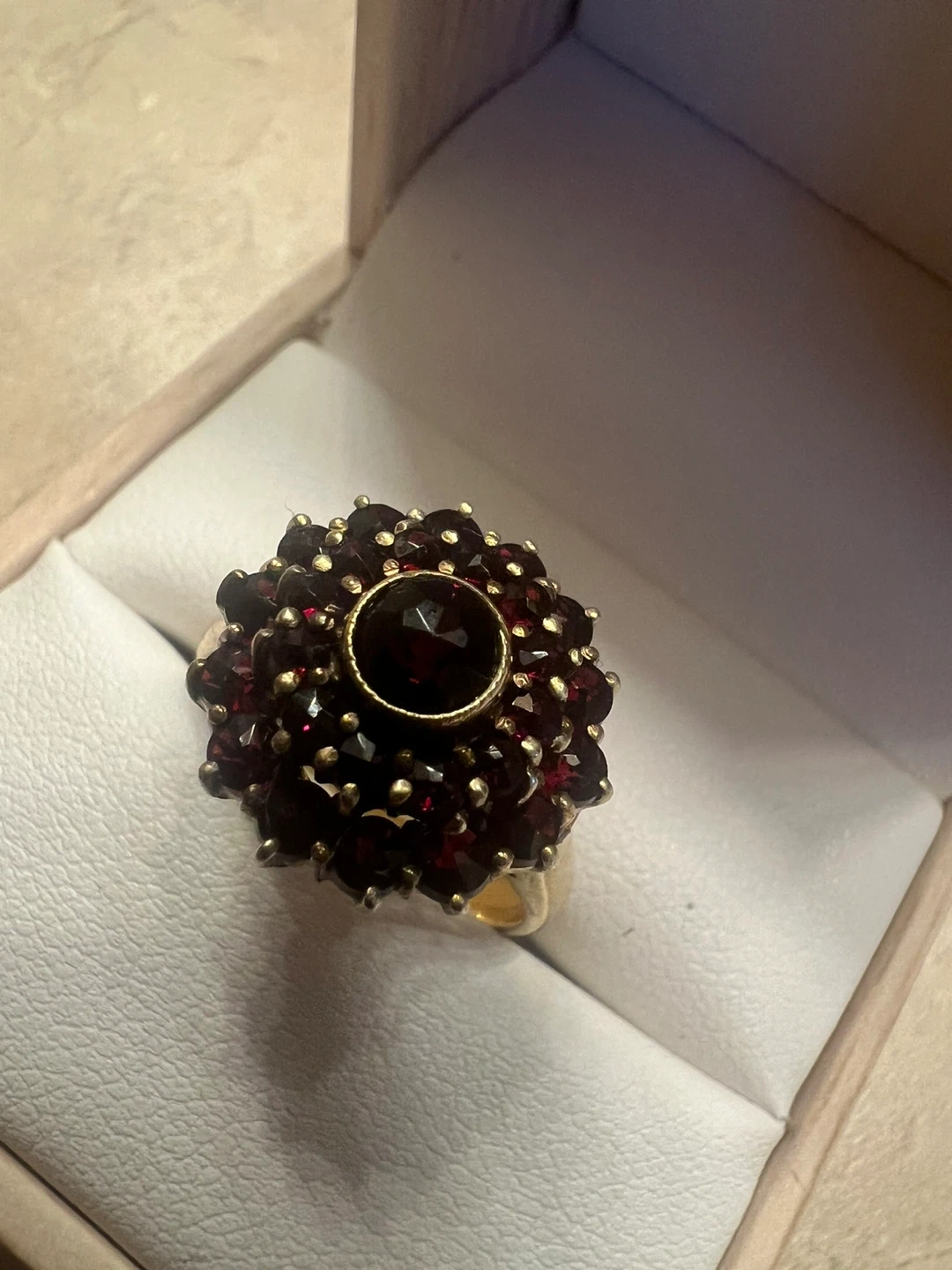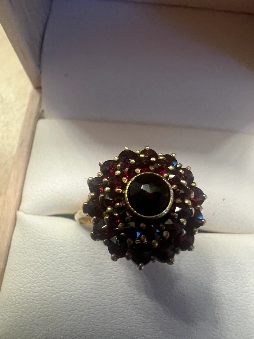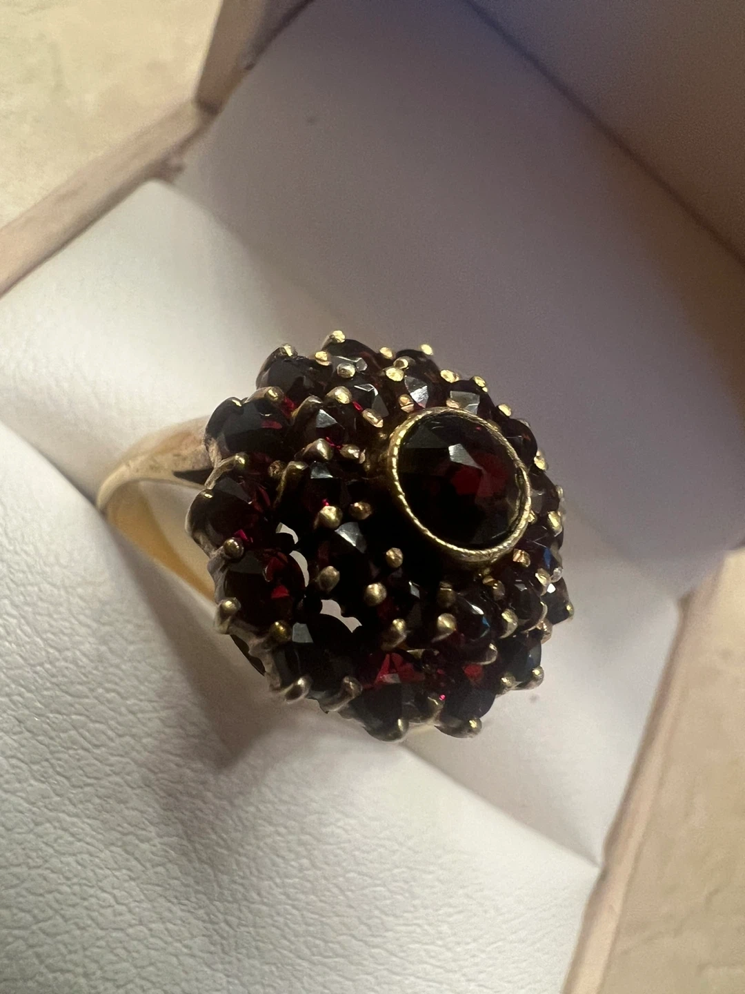 Here's a beautiful 10K gold ring featuring a striking garnet design! It's in great condition and ready to add a touch of elegance to any outfit