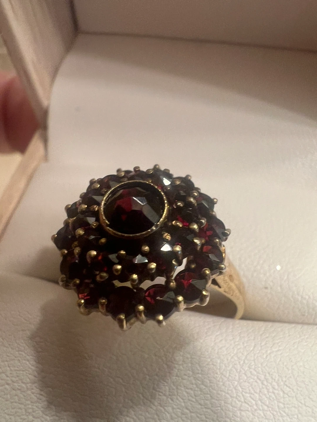 Here's a beautiful 10K gold ring featuring a striking garnet design! It's in great condition and ready to add a touch of elegance to any outfit