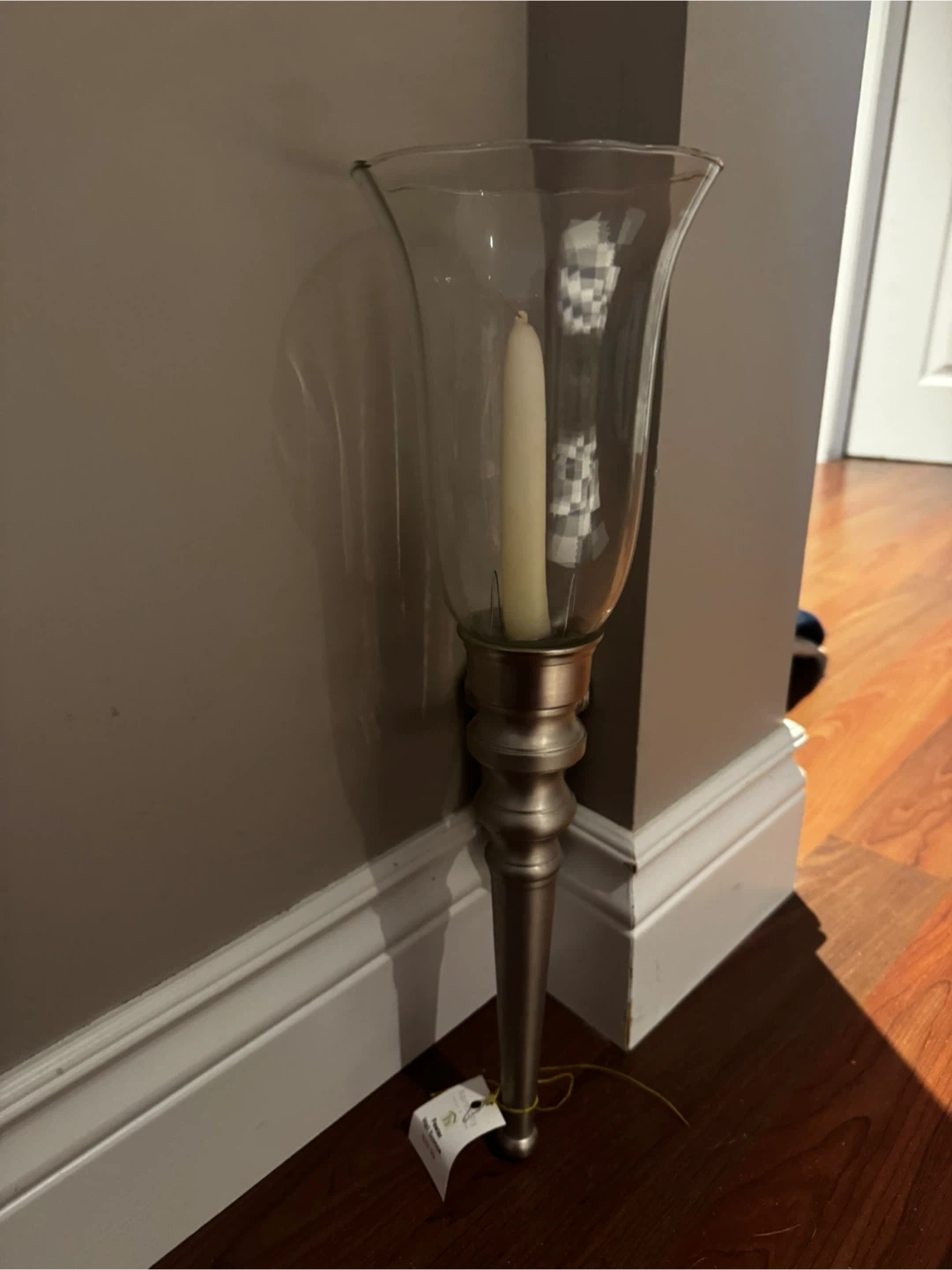 Selling a wall sconce candle holder. It's in great condition and would add a touch of elegance to any room. Perfect for creating a cozy atmosphere!