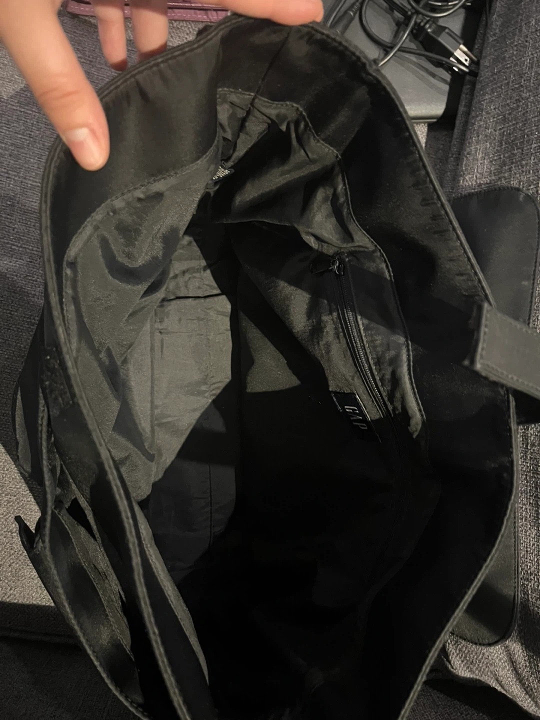 Selling a GAP messenger bag in black. It's in good condition and ready for a new owner. It has a lot of pockets to keep things organized