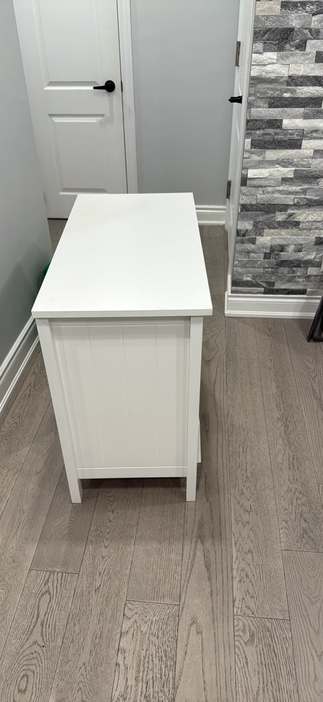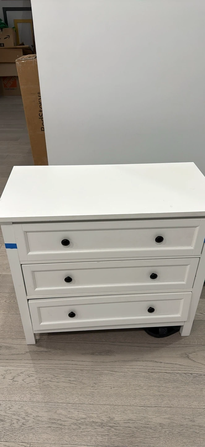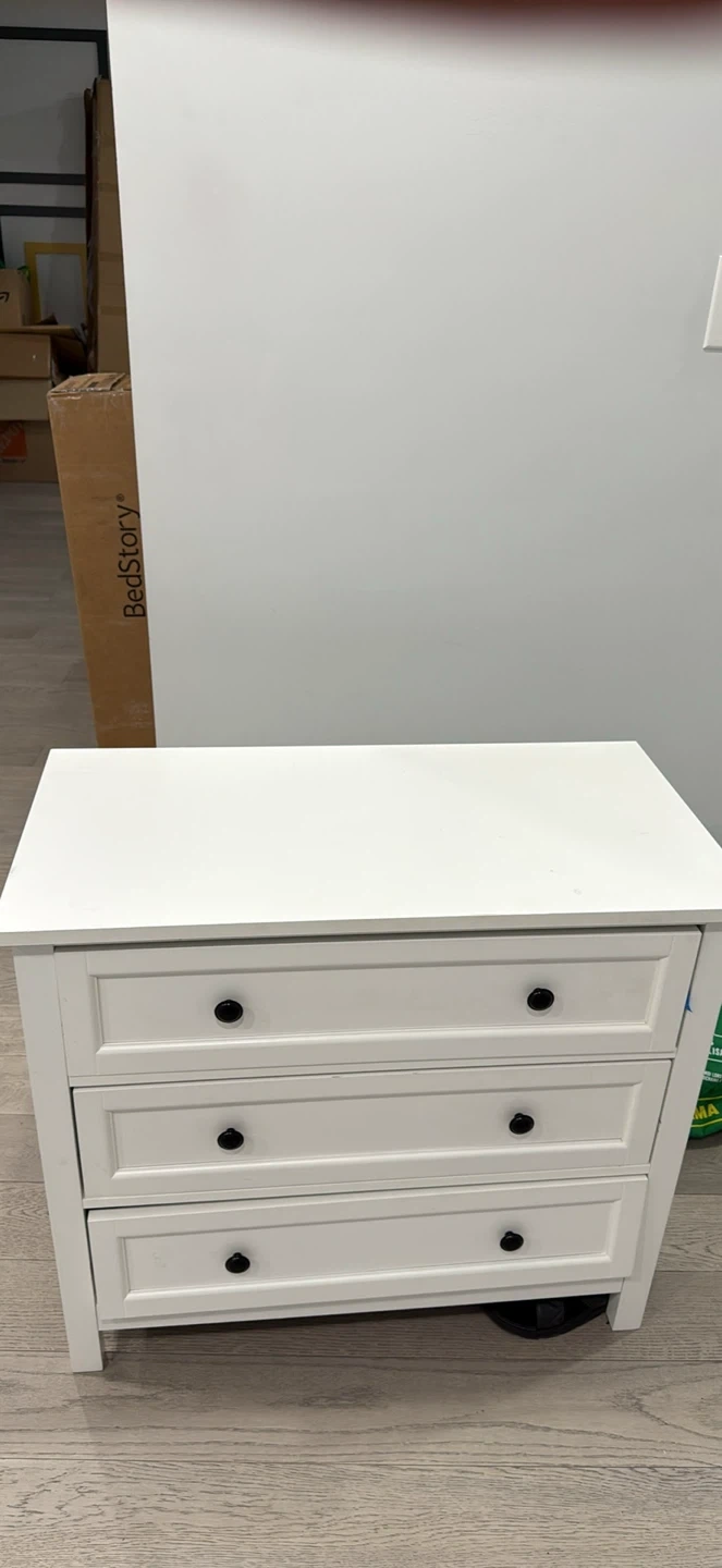 Selling a lovely white 3-drawer dresser! It's in great shape and would be a perfect addition to any bedroom or living space. The drawers offer ample storage, and the clean white finish complements any decor. A great piece for keeping your space tidy and stylish
